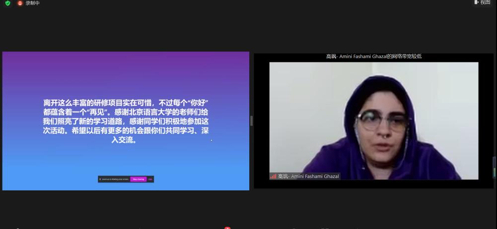 参培学员们在结业仪式上表达了参与此次研修项目的感受。拉妮娅说:“课程带给了我们丰富的知识,并且启发我们掌握中文作为第二语言的教学技巧,从备课到了解学生的困难,以及为学生取得最佳成绩而采用的方法,我都收获很多。”高飒说:“希望以后有更多的机会参加内容这么丰富的项目,共同学习、深入交流。”李昀说:“感谢北语给了大家这次宝贵的学习机会,在本次培训中我不仅学会了很多重要的知识,还掌握了很多中文教学方法”。