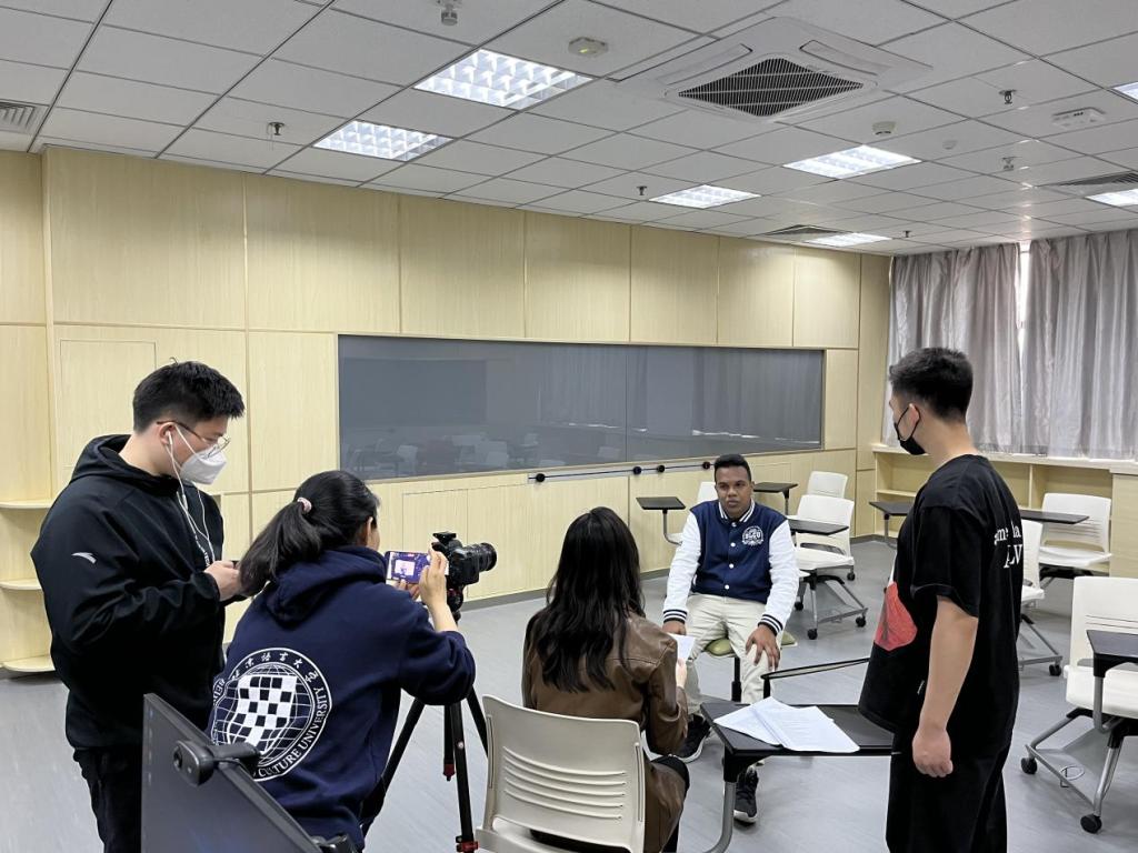 “3月20日,采访的日子到了。对我来说,这是我来中国以后最紧张的一天。我们上课的时候采访组来到了我们教室。最初,拍了1003班在教室里上汉语课的情景。咱们班同学们都在那个视频里。然后,我们去了闻亭老师的办公室,拍了我们的漂亮的闻亭老师的视频。之后,我们在教一楼和会议中心拍了我的视频。因为我的口语还不太好,我们不得不拍了好几次。终于我们拍好了。媒体团队都很热情,我们拍摄的时候,他们鼓励我更好地展示自己。因为他们,我感觉没有那么紧张和害怕了。”