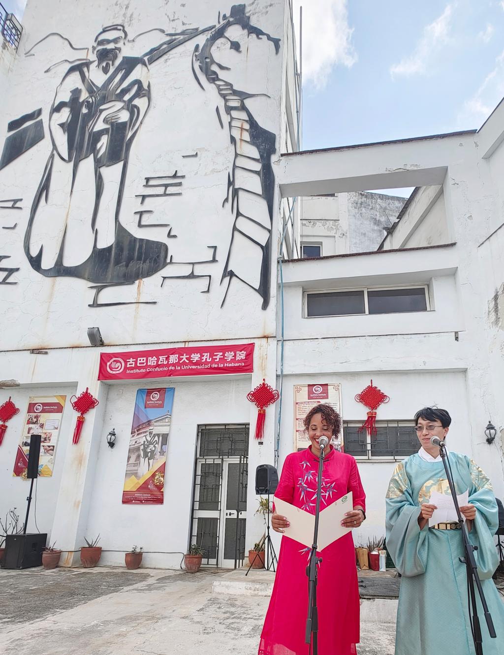 4月20日是联合国第14个中文日,由中国驻古巴大使馆主办、哈瓦那大学孔子学院承办的“中文:增进文明对话——国际中文日”庆祝活动在孔院成功举行。活动融合了丰富多彩的文化体验,如品茗、投壶、古琴、书法、中医、麻将、剪纸、中国结等不一而足;结合舞狮、朗诵、合唱、舞蹈、中国服饰秀等表演节目,热闹非凡,精彩纷呈。