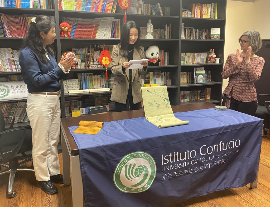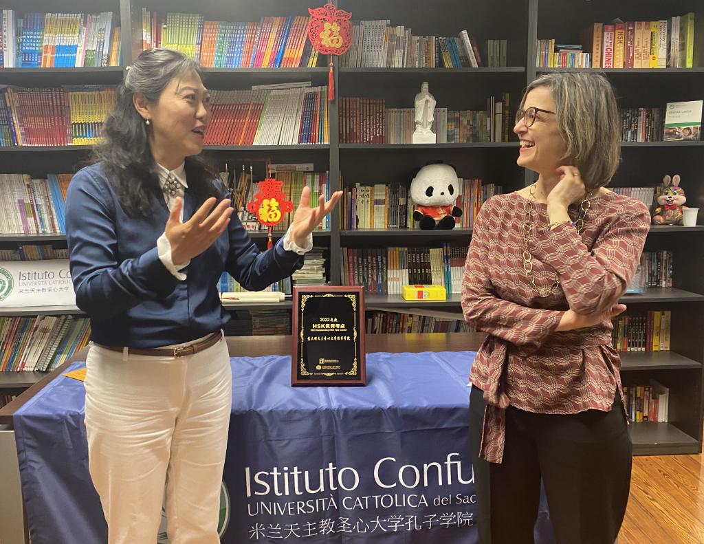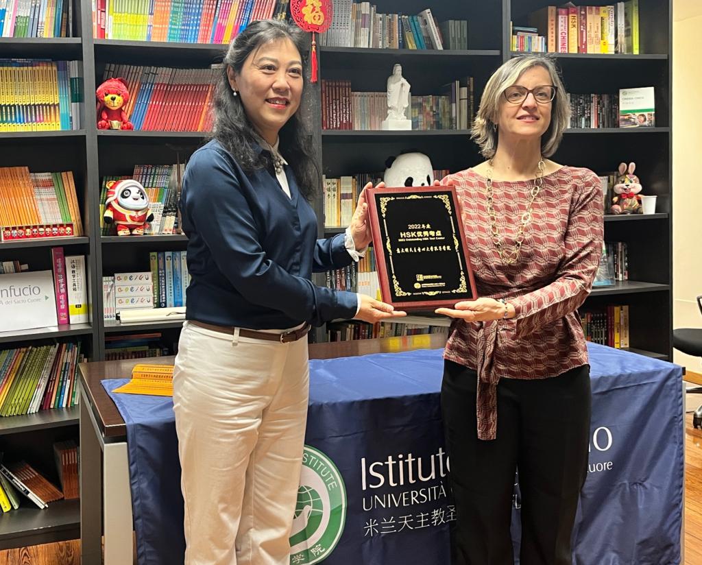 当地时间4月21日下午,圣心孔院举办了“2022年度国际中文优秀考点揭牌仪式”暨考务工作总结会。继取得“2021年度国际中文优秀考点”荣誉后,圣心孔院再度喜获佳绩,成为2022年欧洲九个优秀考点之一,也是本年度意大利唯一的优秀考点。“优秀考点”是由中外语言交流合作中心和汉考国际从全球1330多个海内外考点中遴选出的,2022年共有64家国际中文考点获此殊荣。