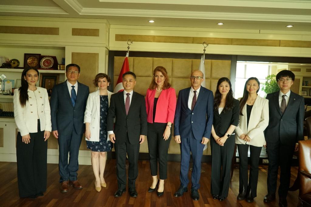 颁奖仪式前,吴代总一行与奥坎大学代董事长Işıl Okan Gülen(奥坎)女士、代校长Mithat Kıyak教授、副校长Güliz Muğan教授、副校长İbrahim Alinur Büyükaksoy教授以及奥坎孔院外方院长Bahar Kılıç(李春)女士和中方院长胡巍女士进行了深入地会谈和交流。