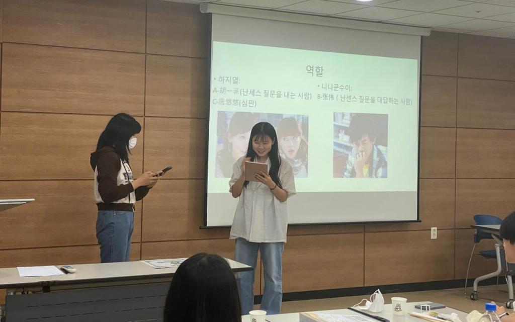 表演结束后,大家期待已久的颁奖环节终于到来。主持人宣布了三个获奖小组的名单,随后,由启明大学中国语中国学系的郭兴燕教授为同学们颁发了奖状。
