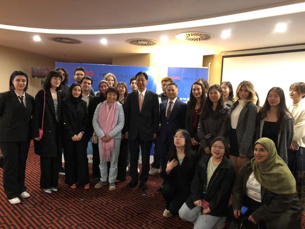 中国驻土耳其刘少宾大使、中国驻伊斯坦布尔吴健代总领事与奥坎孔院、奥坎大学中土翻译系师生以及中国留学生合影
