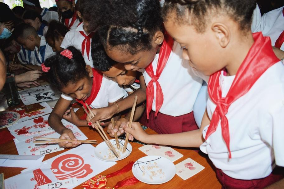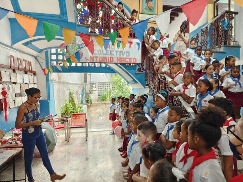 2023年6月1日,哈瓦那大学孔子学院联合Antonio Maceo小学举办儿童节庆祝活动。该小学以纪念古巴民族英雄Antonio Maceo而得名。孔院十余名中古方教师走进古巴小学,笑语欢歌庆祝六一的同时,也让古巴儿童近距离接触体验“新奇”的中国文化。