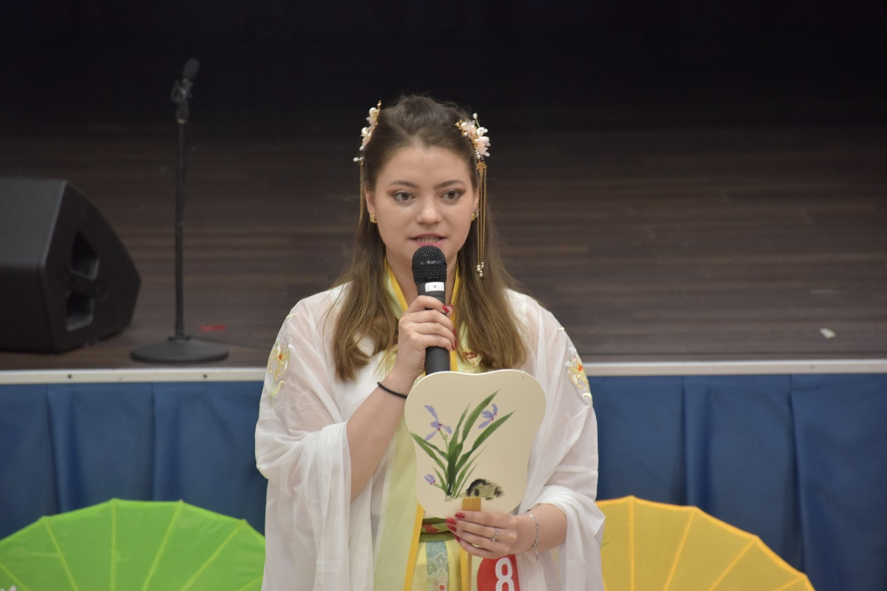来自罗马尼亚各大孔子学院和孔子课堂的选手们在舞台上大放异彩、各显其能。其中,来自锡比乌孔院的丁丽娜(Apostol Diana Irina)在激烈的角逐中荣获二等奖。