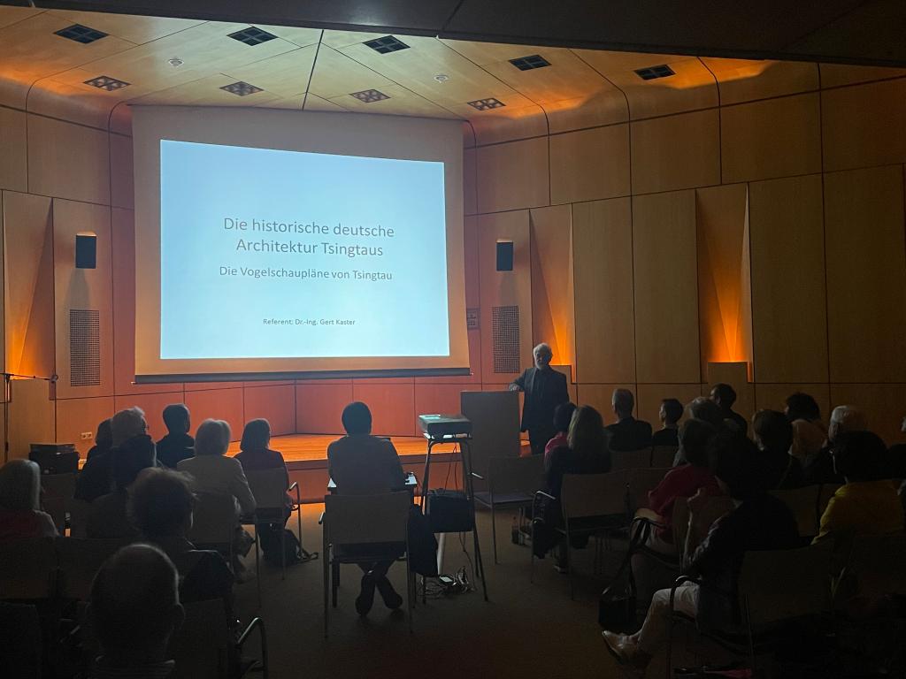 青岛在1898年至1914年期间是中国东北海岸德国租借地胶州的首府。今天,这个城市是一个拥有900万居民的经济大都市,是世界上最大的集装箱港口之一。在简短的演讲中,丹尼尔·苏斯曼博士(Dr. Daniel Suebsman),卡斯特博士(Dr.-Ing. Kaster)和来自湖南师范大学的艾博·施派舍博士(PD Dr. Eberspächer)回顾德国管理下的建城岁月,强调当时的全球政治局势、建筑历史以及义和团战争背景下的中国艺术品收藏等话题。
