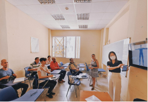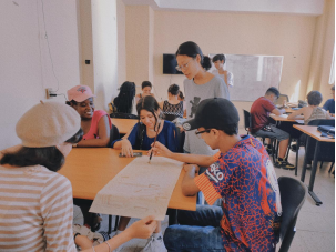 李菲兰老师讲授的旅游汉语,模拟学生前往中国的生活情境展开教学。课程包括问候、点菜、换钱等诸多主题,帮助学生掌握应用于不同场景的词汇和语法,开展场景对话、组织学生练习,以便未来能顺利交际。课程因具有较强的针对性和实用性受到学生的热烈欢迎,报名人数爆满。