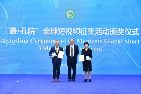9月27日下午,中国国际中文教育基金会成功举办主题为“相信未来 共绘精彩”的全球“孔子学院日”活动,期间揭晓了第三届“最·孔院”全球短视频征集活动获奖名单。本届“最·孔院”共征集到来自61个国家102所孔子学院(课堂)的351部作品,获奖作品111部,12人获得“孔院达人”称号。北京语言大学校长段鹏博士出席了颁奖仪式。