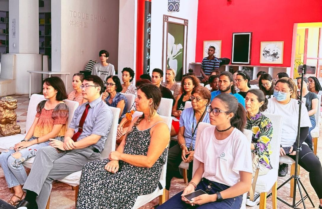 10月20日,时值古巴一年一度国家文化日,哈瓦那大学孔院共襄盛举,积极组织文化日庆祝活动,举办“古巴文化的中国印记”专题座谈会,探讨中华文化在古巴这一遥远国度、在拉美这片文化土壤的深刻影响。活动邀请了古巴华裔艺术家钟长苻(Alfredo Chong)、孔院荣休教师邓小荣、孔院特聘中医专家卡洛斯以及孔院本土中文教师英迪拉作为分享嘉宾,结合孔院新媒体团队拍摄的“中华文化在古巴的传播”专题系列短视频,呈现了一个个形象立体、精彩纷呈的传奇故事,吸引了大量孔院师生和哈瓦那华区民众参与。