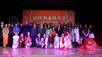 玉兔辞旧,金龙迎春,在2024甲辰龙年即将到来之际,伊斯坦布尔奥坎大学孔子学院于1月19日上午在奥坎大学成功举办了一场精彩纷呈的新春联欢活动。中华人民共和国驻伊斯坦布尔总领事魏晓东先生和奥坎大学董事会主席贝基尔·奥坎先生为活动致辞。来自海峡大学孔子学院、晔迪特派大学孔子学院、土中文化协会、中资企业等社会各界的嘉宾代表与奥坎大学师生近200人共迎中国新年。