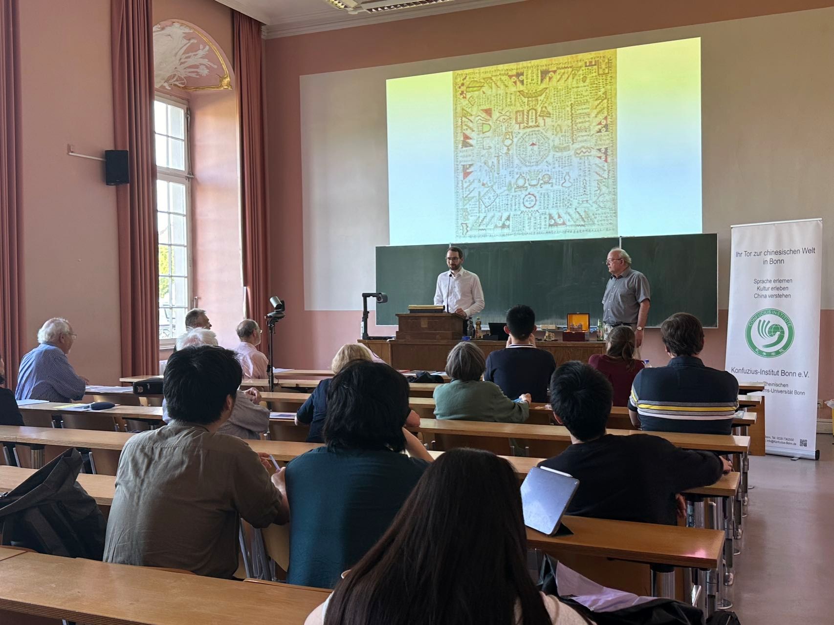 作为波恩孔院与波恩大学汉学系汉学讲座计划的一部分,舍康海博士的讲座为听众们展示了二十世纪初德国人在东亚地区的生活轨迹。通过一系列材料,向听众展示了不为大众所熟知的历史面貌。讲座结束后,听众纷纷就自身感兴趣的话题展开讨论交流。
