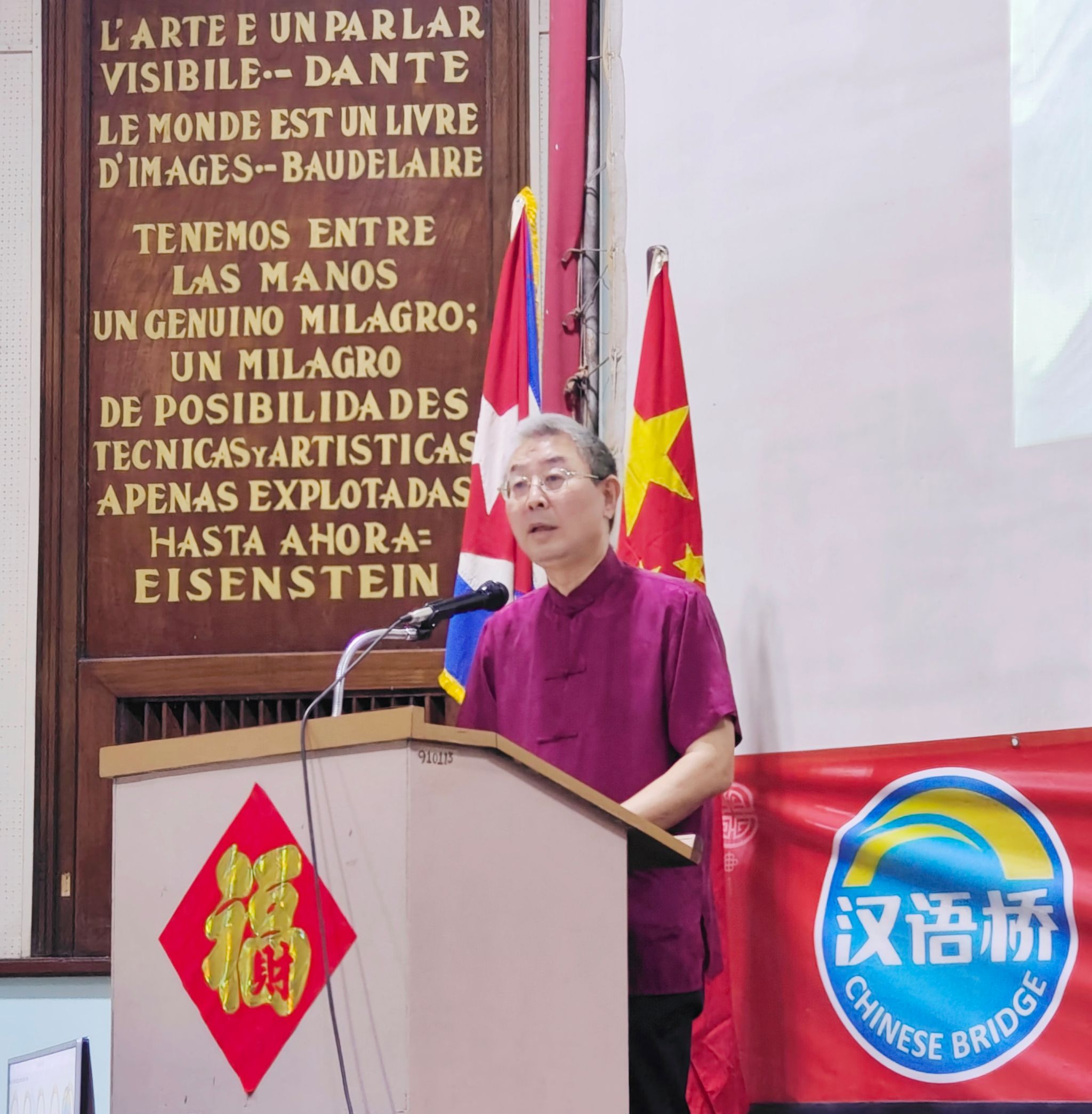 5月24日,由中国驻古巴大使馆主办、哈瓦那大学孔子学院承办的第23届“汉语桥”世界大学生暨第17届世界中学生中文比赛古巴赛区决赛圆满落下帷幕。中国驻古巴大使马辉先生、文化参赞韩立昕女士、古巴高等教育部第一副部长戈麦斯博士、哈瓦那大学副校长席尔瓦博士,哈瓦那华区管理局、古巴武术学校、古中友好协会、古巴对外友协等多家古巴机构及社会团体出席了此次活动。