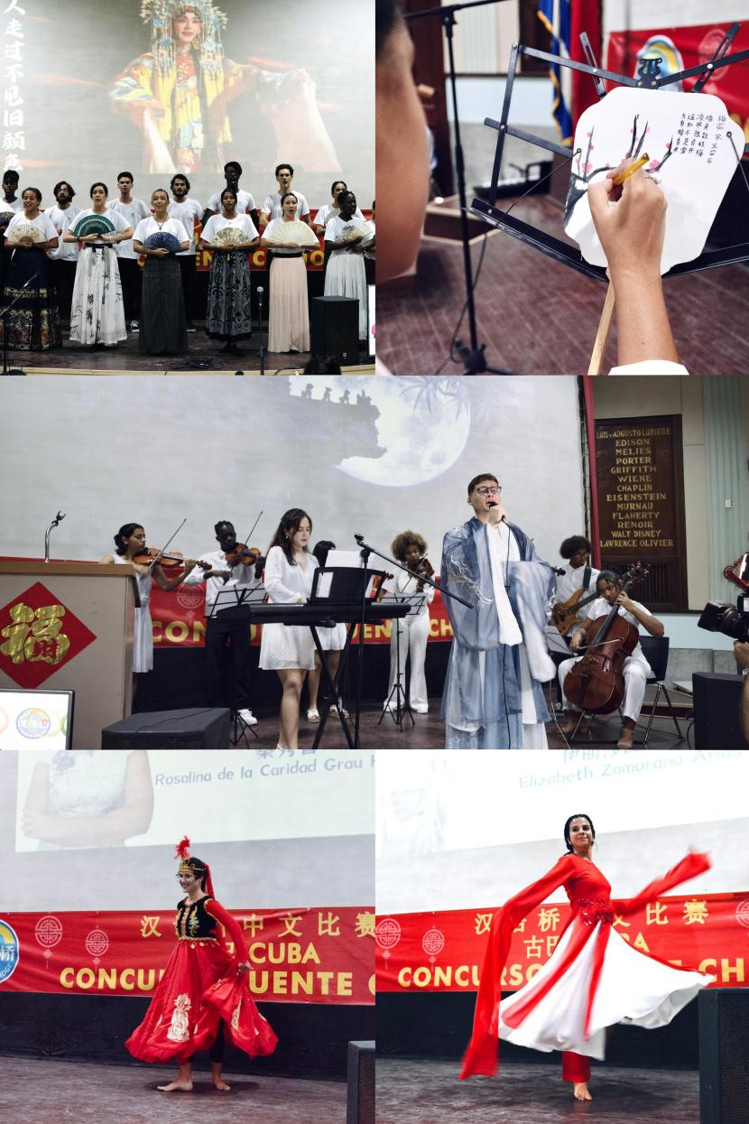哈大孔院近年来积极着力传播优秀中华文化,结合古巴文化背景,以当地民众喜闻乐见的方式,每年举办数十场内涵丰富的文化活动,这些活动也让当地民众及孔院学生了解到了更加多元的中华文化。此次汉语桥比赛,孔院合唱团以中国独特的戏剧唱腔演绎的古风歌曲《赤伶》惊艳四座,选手们的中华才艺表演也让观众大开眼界。传统诗歌吟诵配合交响乐队演奏,流行音乐演唱与八段锦表演,竖笛演绎中国传统民乐,现场绘制中国画,中国民族舞与古典舞表演……精彩纷呈的演绎离不开选手们深厚的中华文化沉淀。选手们在舞台上“各显神通”、展现自我,为全场观众呈现了一场独具中华文化魅力的盛会。