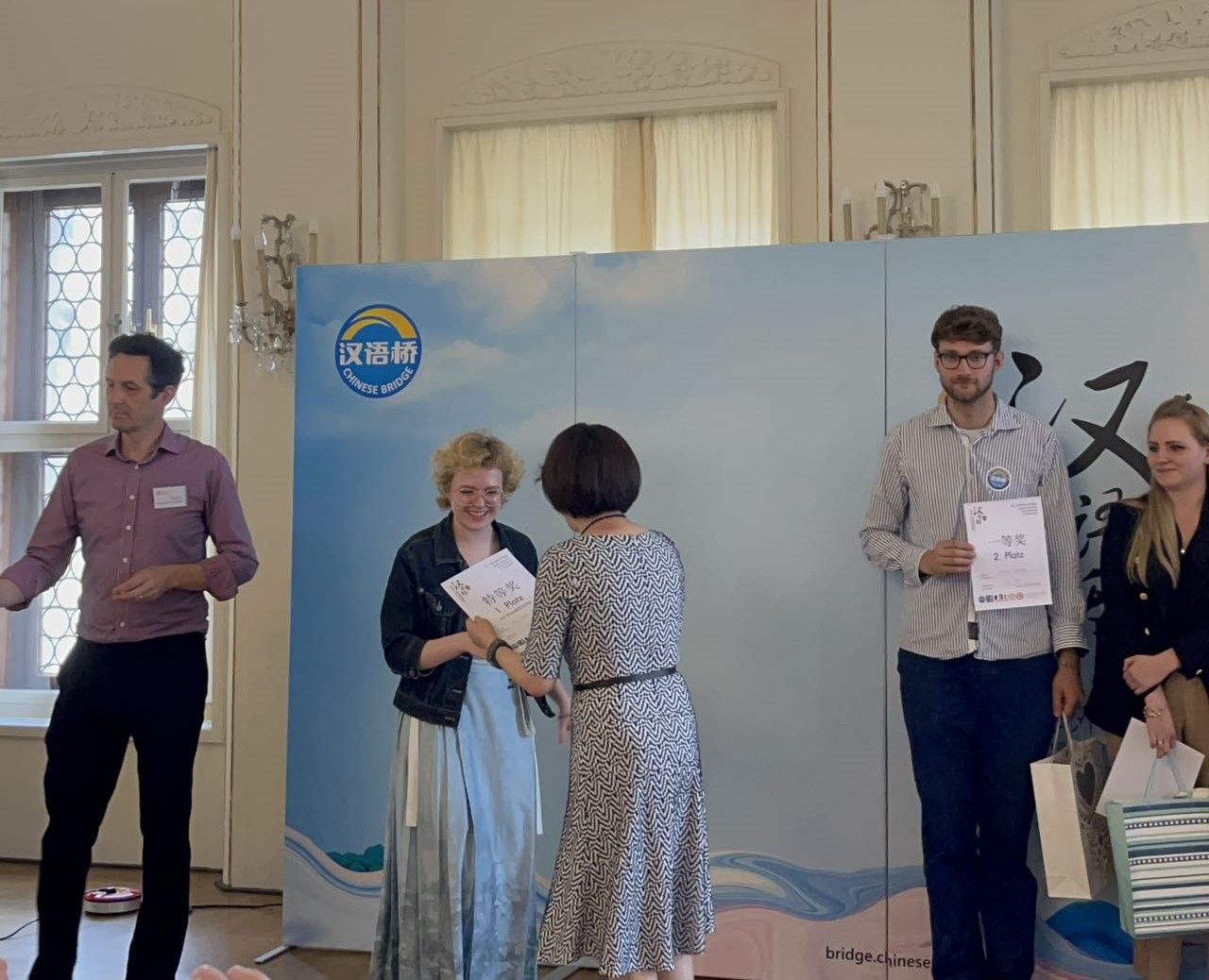 经过一轮激烈的角逐,代表波恩孔院的选手李欢欣获得了此次比赛的冠军,今年暑假将代表德国参加在中国举办的汉语桥决赛。另外两位选手,朱励安获得了三等奖,李欧宁优秀奖。此次也是波恩孔院首次有推荐的学生获得预选赛冠军,对此波恩孔院表示热烈的祝贺。