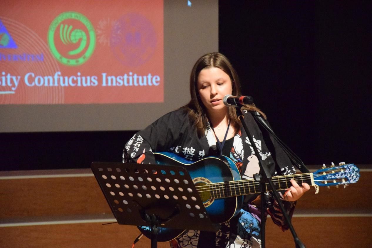 在“土耳其大学生中文歌曲卡拉OK比赛”中,奥坎孔院的学生们动情歌唱,不仅展现了歌唱才能,而且通过中文歌曲表达了对生活的热爱和积极向上的人生态度。青果(Çağla Selin Acar)以一首吉他弹唱《好想爱这个世界啊》惊艳众人,获得了三等奖。梦乡(Sıla Dinçer )一曲《错位时空》,用甜美的歌声和细腻的演绎感染了在场的观众。小菲(Safiah alshareef zakaria hamzah)演唱的《少年》旋律轻快,带着大家梦回年少时代,共同高歌心中理想。