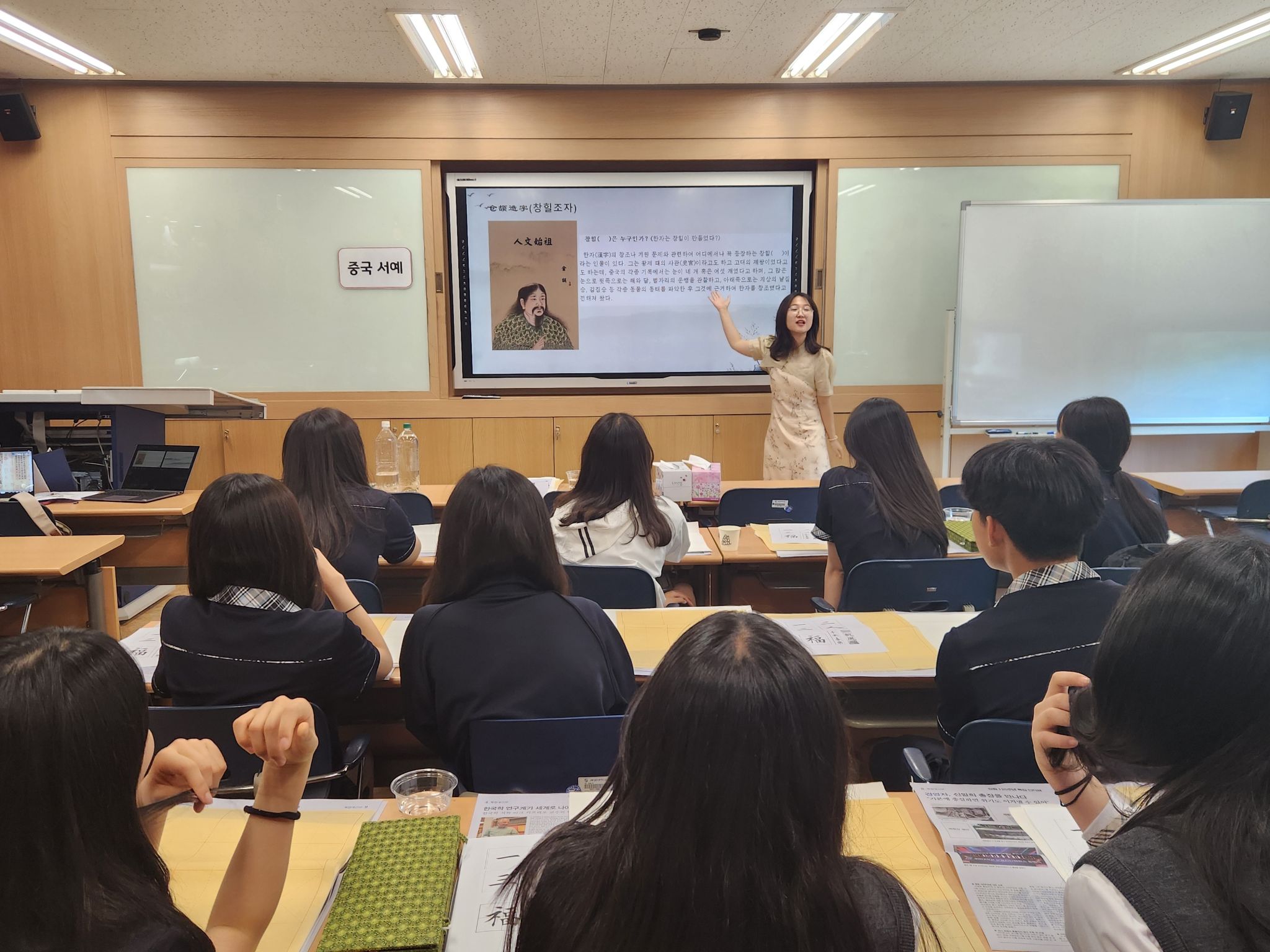 2024年6月7日上午,韩国启明大学孔子学院书法文化体验教室内书香氤氲,由孔子学院精心为韩国德和中学12名高中生组织的中国书法文化体验活动在此举行。此次活动由孔子学院志愿者教师李淑一老师主讲,在孔院其他教师及工作人员的协助下,为学生们呈现了一场融知识性、趣味性于一体的文化盛宴。