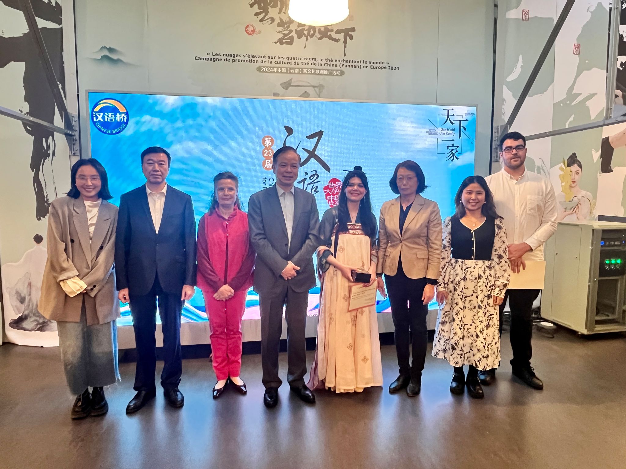法国当地时间6月1日,由中国驻法国大使馆教育处主办、《欧洲时报》承办的第23届“汉语桥”世界大学生中文比赛法国区预选赛在巴黎欧洲时报文化中心隆重举行。中国驻法国大使馆公使陈力先生、中国驻法国大使馆教育处公使衔参赞周家贵先生和《欧洲时报》社长钟诚先生等出席了此次活动。拉罗谢尔孔子学院选手Lilou BOURHIS凭借出色的表现荣获法国赛区冠军。