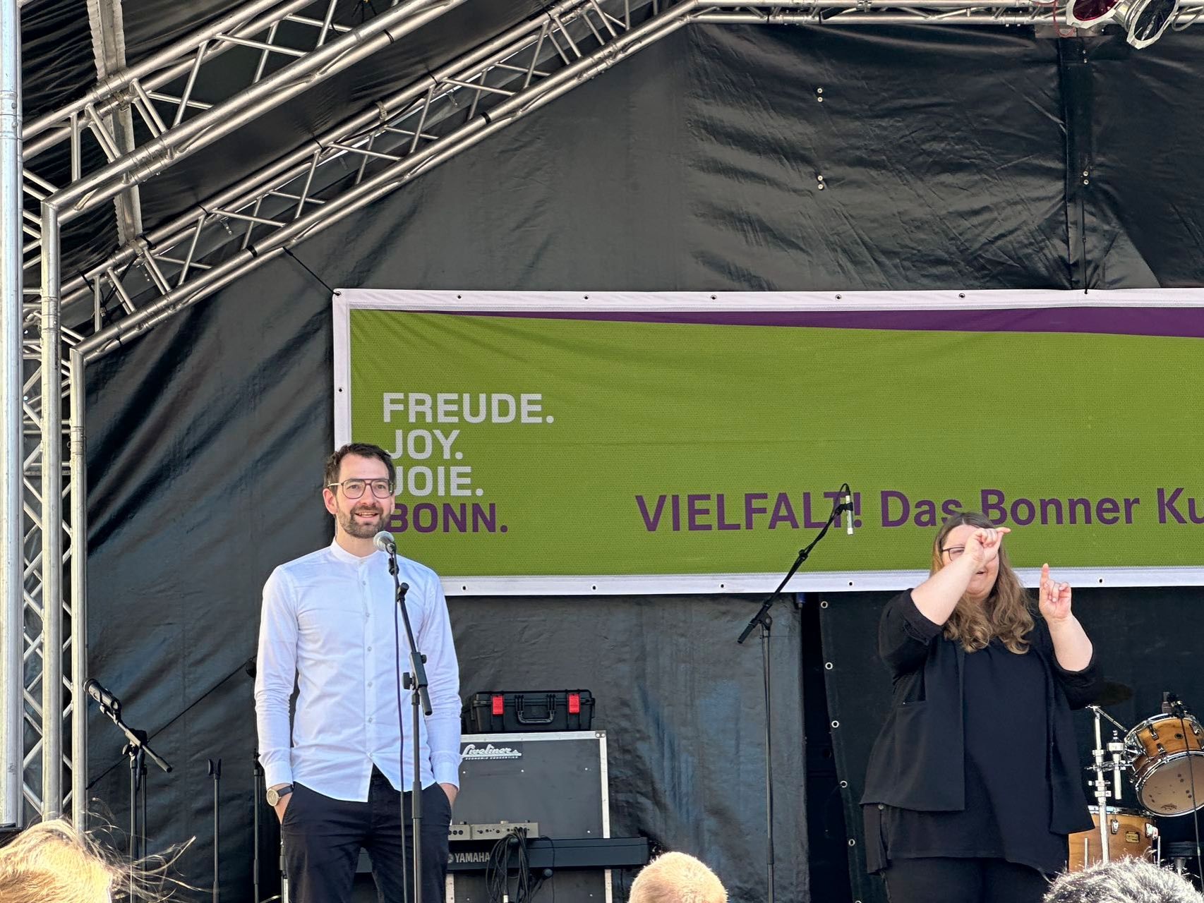 当地时间6月12日上午11时许,在波恩老市政厅对面的广场上,波恩多元文化节正式拉开帷幕。以加强文化交流,消除多文化间误解为主题,本次文化节以文艺表演与展点展示等形式,为波恩市民带来了精彩纷呈的视听盛宴。展点宣传由30余家协会和机构参与,各个机构与协会各显神通,意图借助文化节这一广阔平台向市民宣传自己独特的内容和活动。