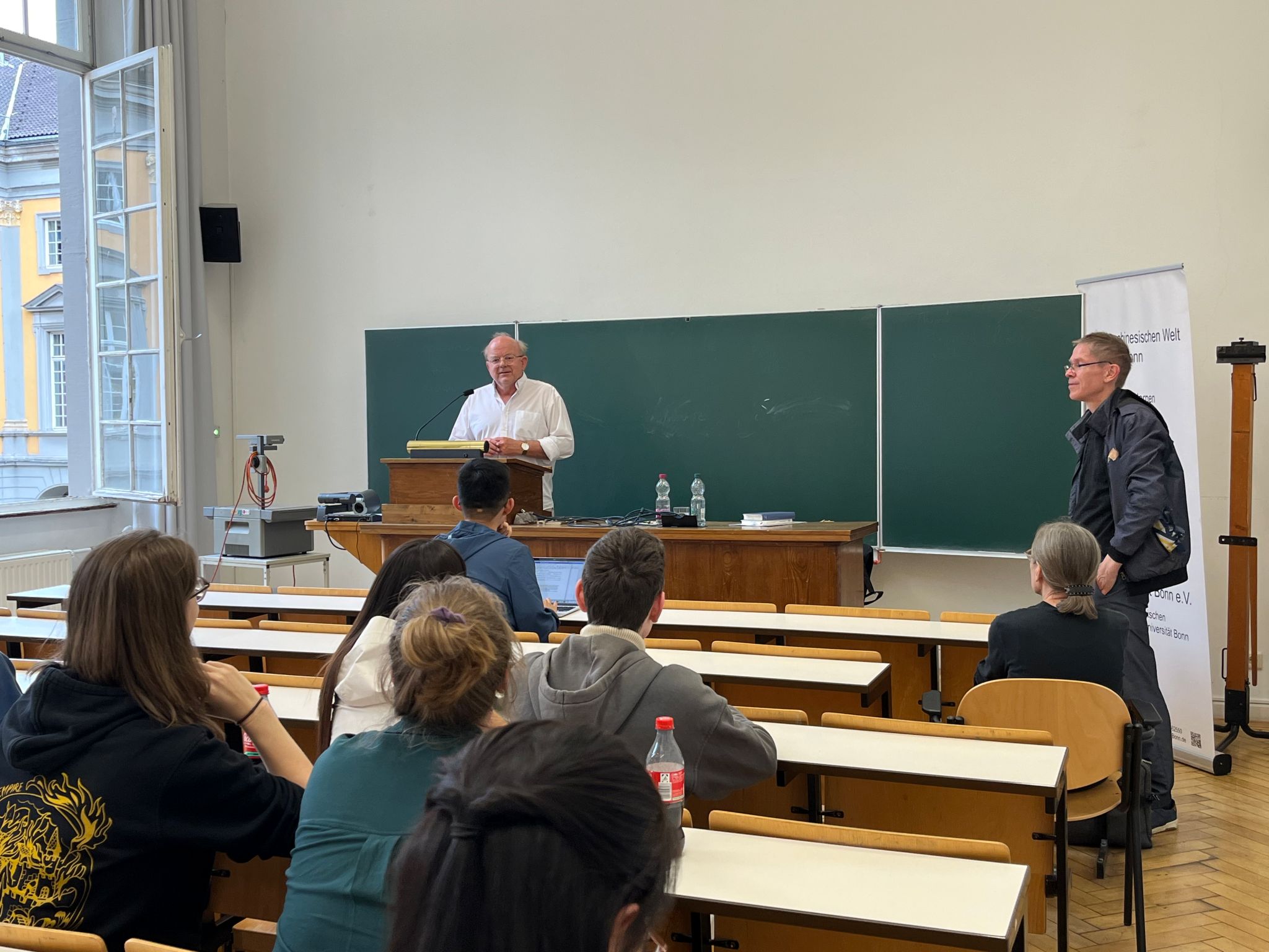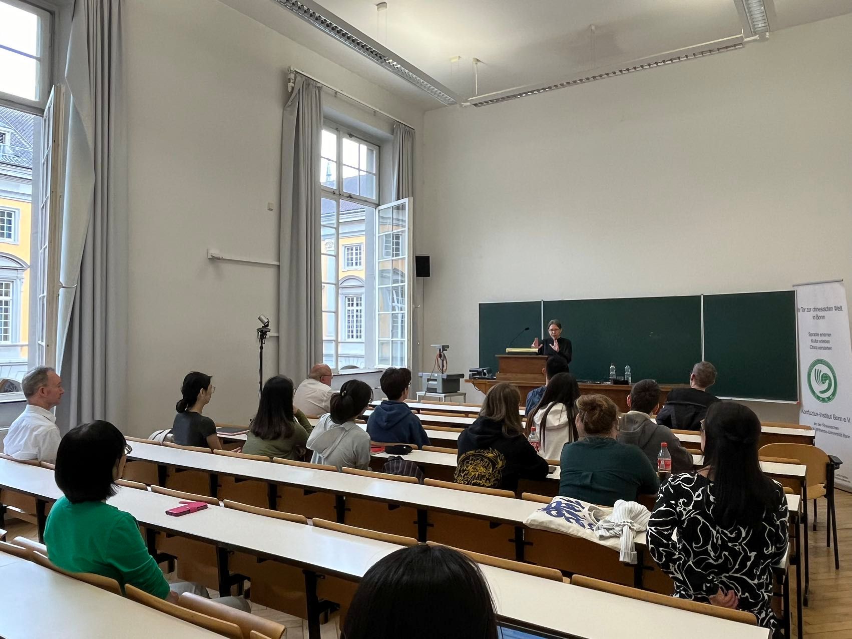 当地时间2024年7月1日,德国波恩孔子学院携手波恩大学汉学系于大学主楼成功举办学术讲座。讲座主题为“阿尔伯特·艾伦斯坦《水浒传》译本介绍与改写式翻译思想研究”。活动伊始,波恩大学汉学系主任廉亚明教授(Prof. Dr. Ralph Kauz)简要介绍了德国表现主义作家艾伦斯坦。随后,汉学系教师、翻译家马海默博士(Dr. Marc Hermann)介绍了此次活动的主讲人德国汉学家、翻译家尹芳夏(Eva Schestag)。