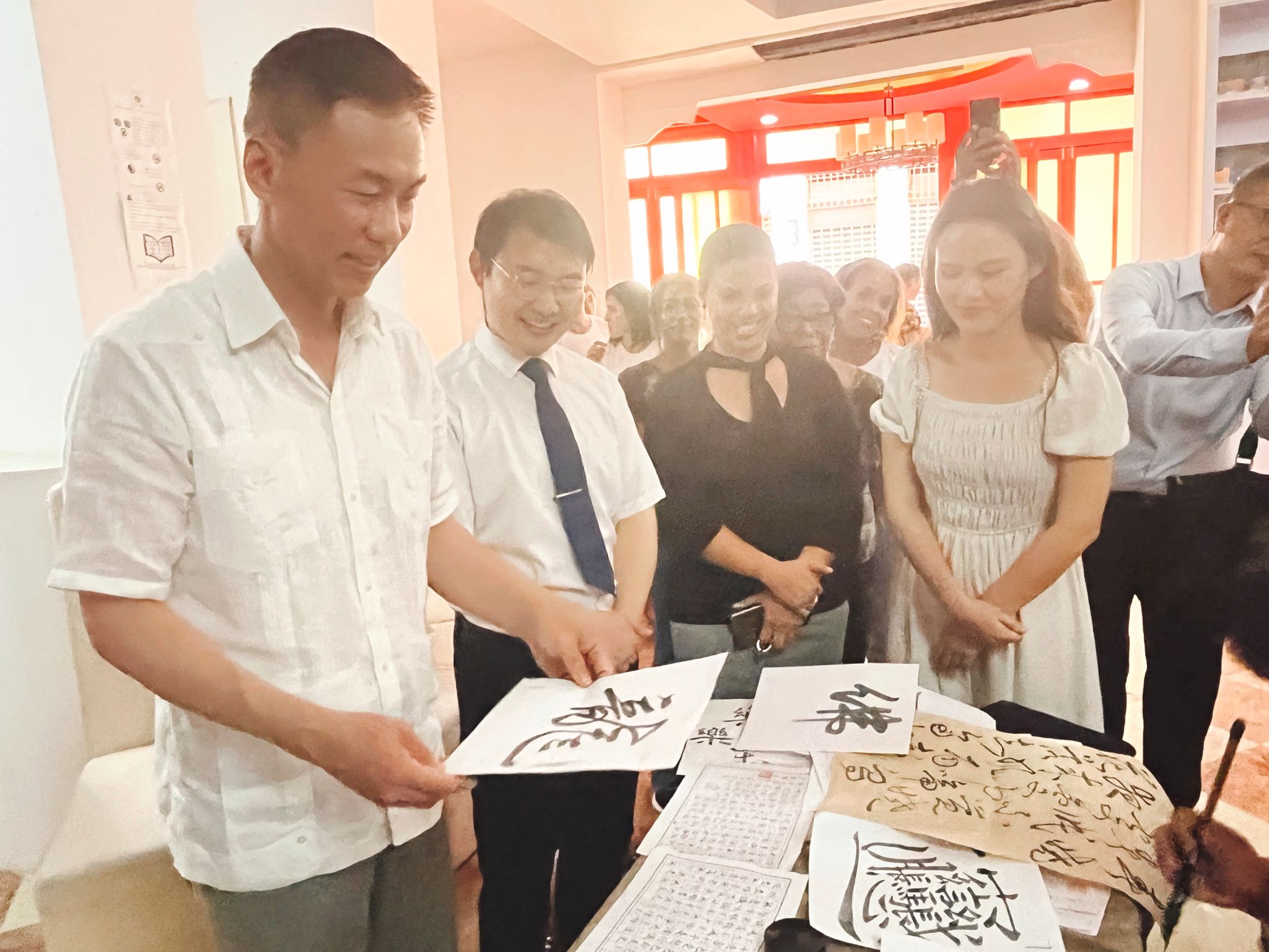 孔院本学期开展了中国传统手工艺课程,此次专门展出了一些学生在课堂上制作的手工作品,大使评价道,古巴朋友具有很好的艺术品味和艺术审美,古巴艺术气息浓厚,民众具有普遍较高的艺术素养。