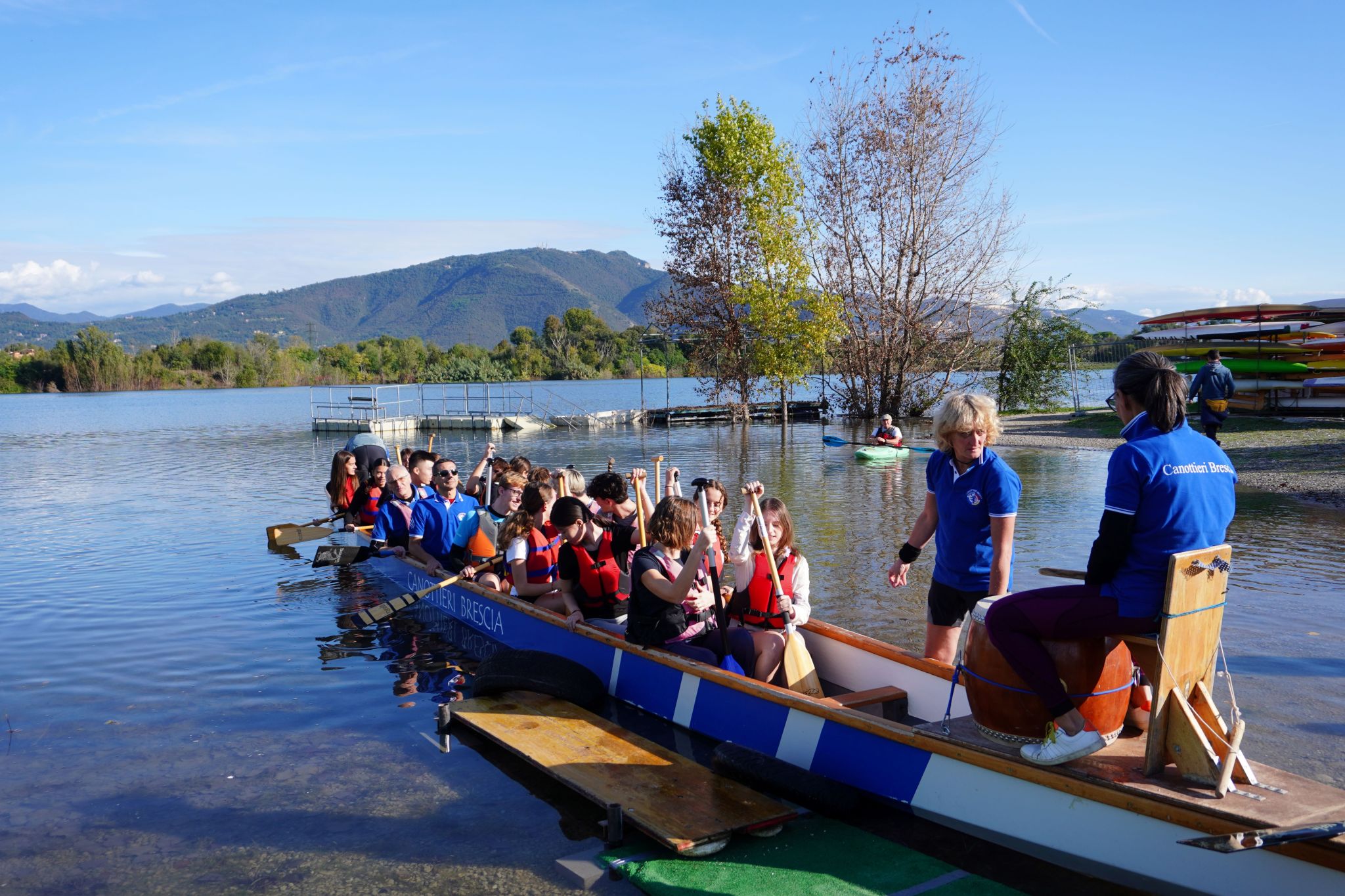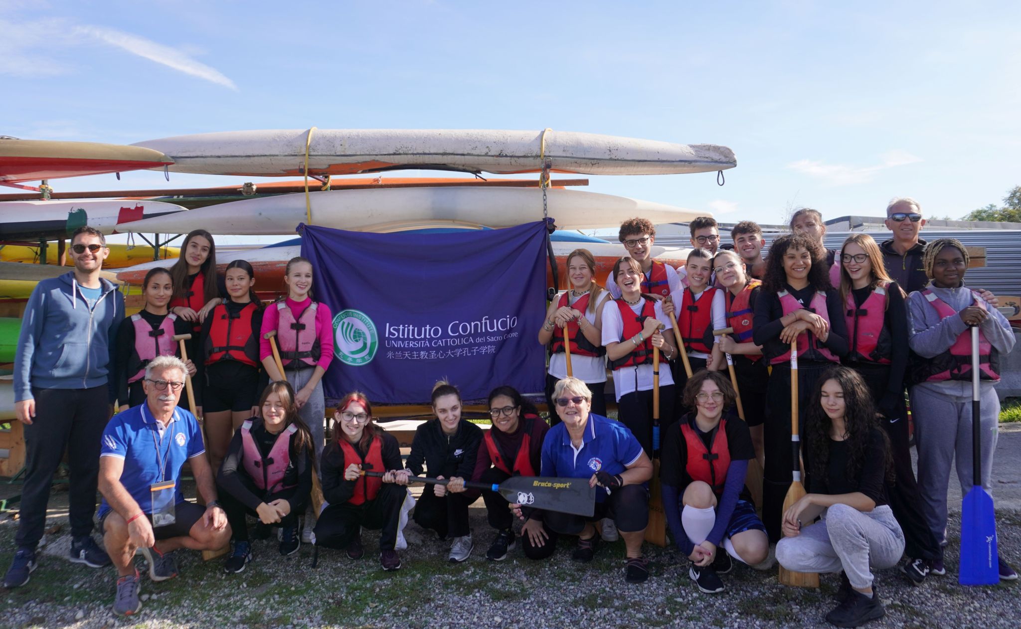 当地时间2024年10月12日,为庆祝孔子学院项目20周年和2024年孔子学院日,意大利米兰天主教圣心大学孔子学院及两所下属孔子课堂在布雷西亚(Brescia)湖区开展了赛龙舟体验活动。该活动由布雷西亚划艇协会(Canottieri Bresica)负责实施,圣心孔院布雷西亚分部志愿者教师、米兰马切林内(Marcelline)高中孔子课堂和布雷西亚伦纳迪(Lunardi)高中孔子课堂师生共计25人参与了活动。