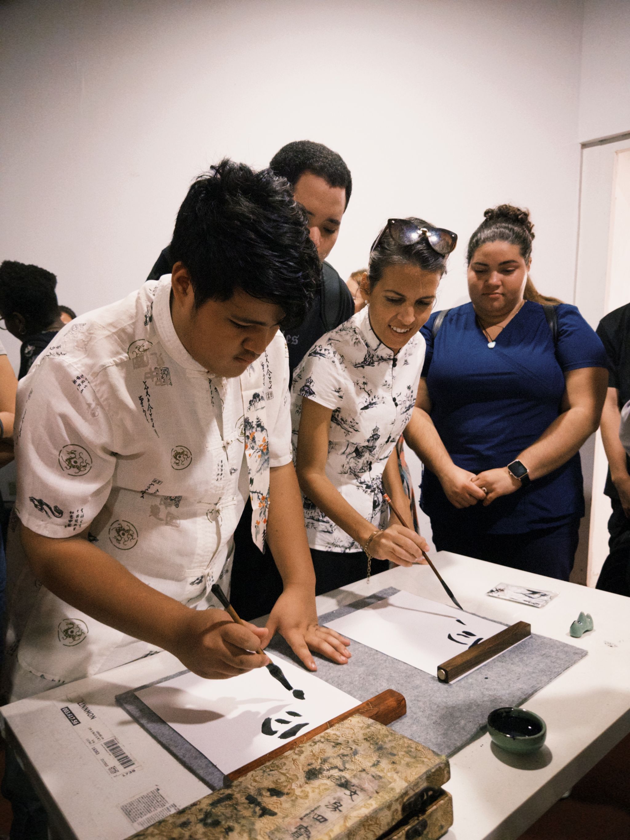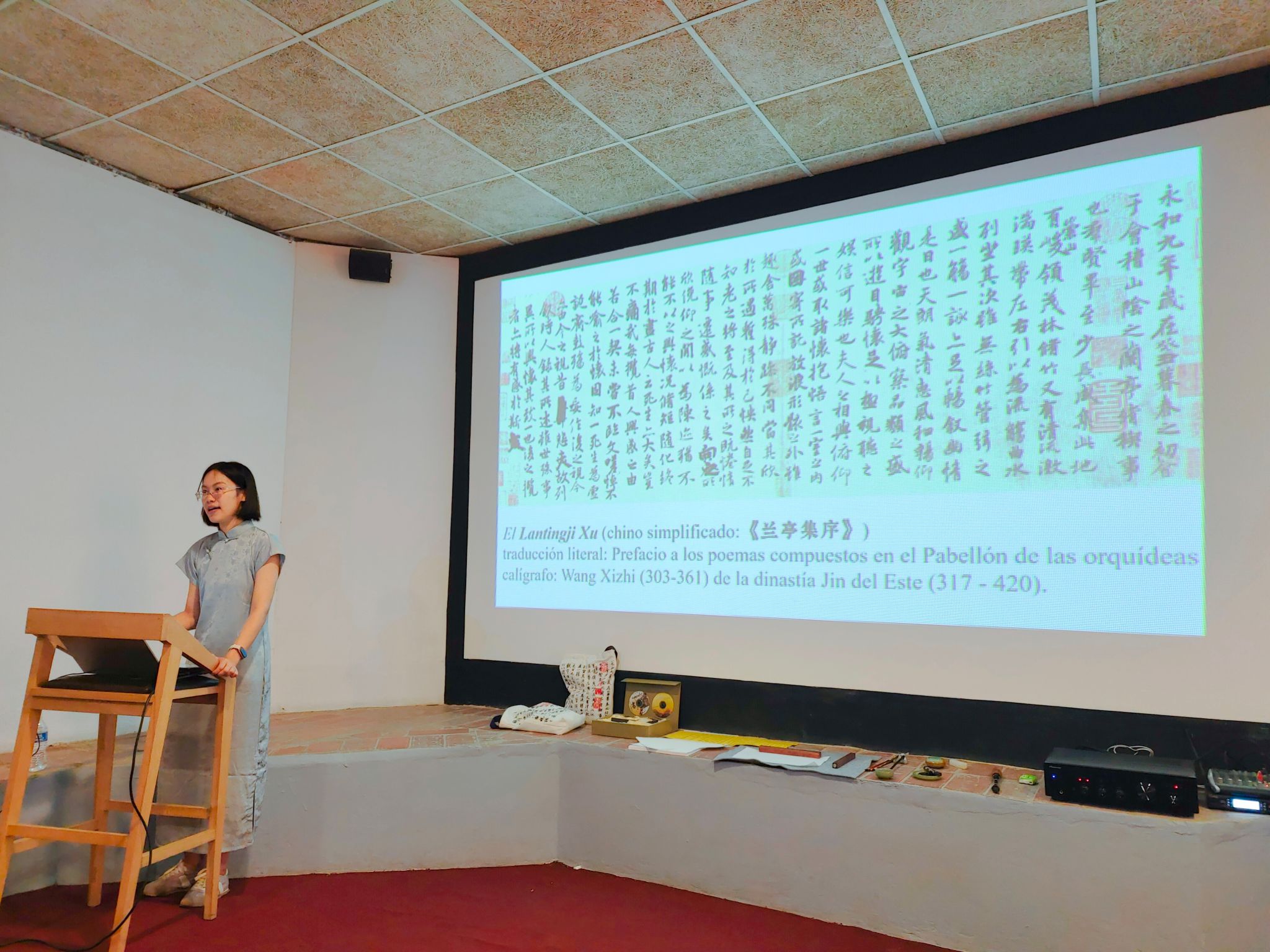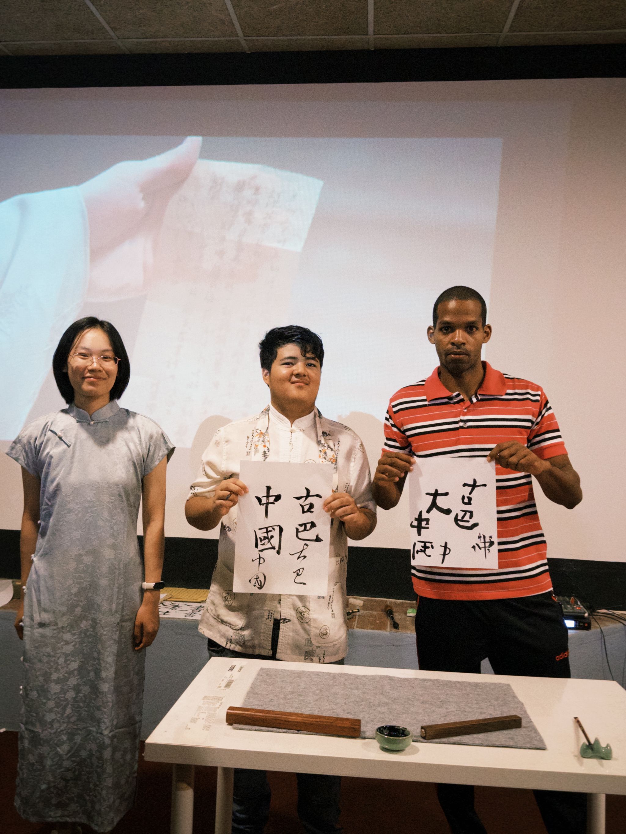 10月15日,哈瓦那大学孔院在古巴首都华人街的金鹰戏院艺术馆成功举办了“兰亭雅集·中国书法”文化讲座及体验活动。中国驻古巴大使馆参赞韩立昕女士、孔院中古方院长及师生、古巴艺术家、中国文化爱好者们共同参与了这一文化盛事。
