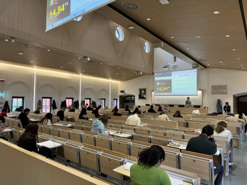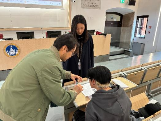 考试当天,监考教师们早早到达考试地点布置考场,根据考生人数和考场布局合理安排座位,一一核查考场设备,测试语音播放效果,检查试卷材料是否齐全等,力求为每一位考生营造一个安静、有序的考试环境。考生们到达考场后,主考老师宣读考试规则,向考生们详细说明考试流程及注意事项。针对部分首次参加考试或有疑问的考生,监考老师使用意大利语耐心解答,确保所有考生做好充分准备。考前的细致安排和贴心指导,不仅缓解了部分考生的紧张情绪,也保障了考试的顺利开展。