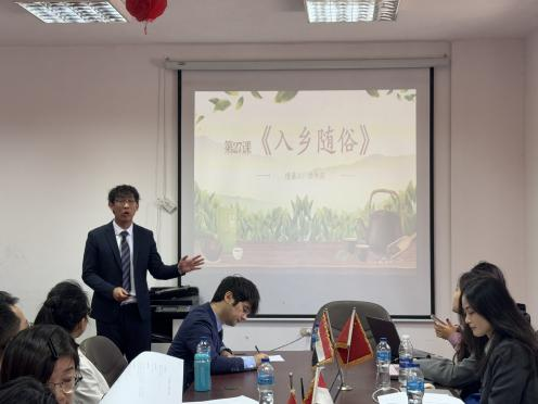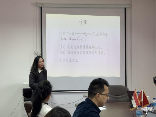 在培训环节中,贾丽丽、叶秋琪和徐争启三位志愿者教师进行了教学技能展示。他们围绕语言教学与文化传播精心设计课程,从情景模拟到文化故事融入,充分展现了创新的教学理念和扎实的教学基本功。公派教师吕东方、黄勤海、童威结合丰富的教学经验,对教学内容进行了专业点评,从课程设计的亮点到教学方法的优化提出了具体建议,为志愿者教师提供了切实可行的改进方向。