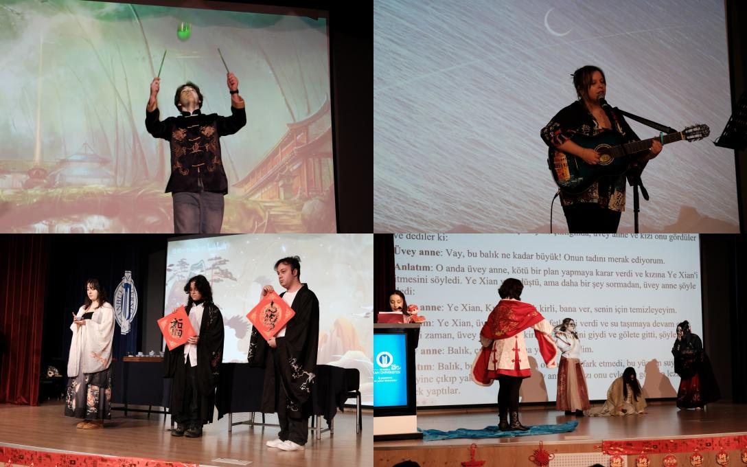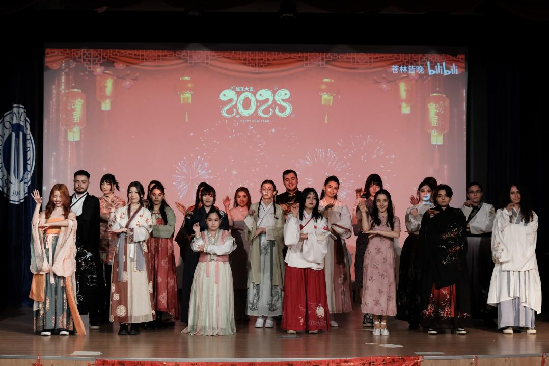本次联欢会以一场精彩的中华服饰秀与蛇年China Fun舞蹈拉开序幕,中文预备班及一、二年级的学生们身着华美汉服、唐装和旗袍,在传统与现代的融合中展现中国文化的独特魅力。随后,奥坎大学人文社科学院院长Prof.Cemal Demircioğlu老师深情演唱了经典中文歌曲《月亮代表我的心》,让观众感受到了中国歌曲的温馨感人。