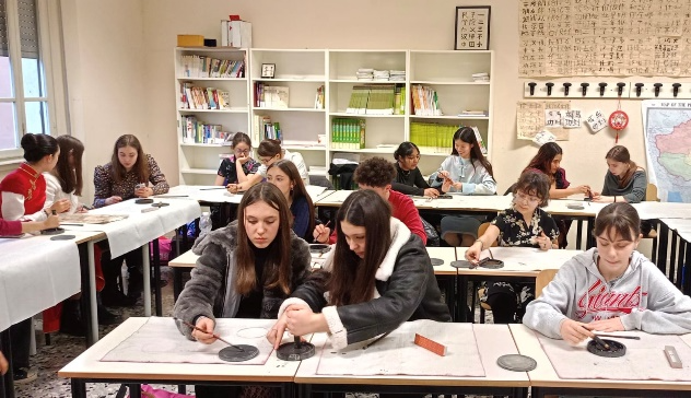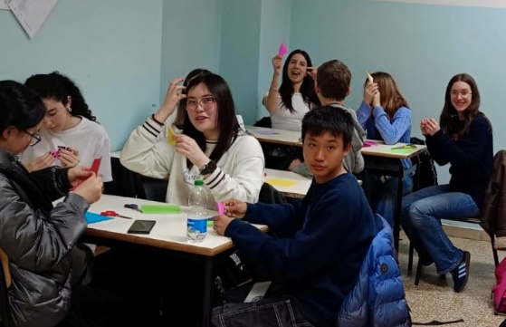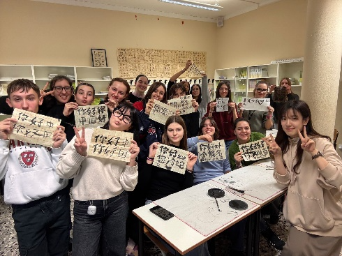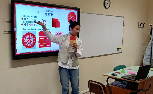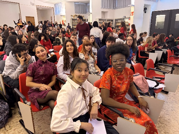 2月11日下午,意大利圣心大学孔子学院下属孔子课堂伦纳迪(I.I.S.A.Lunardi)高中热闹非凡,圣心孔院布雷西亚校区的两位志愿者教师郭子超和刘一霖,与伦纳迪高中所有学习中文的意大利学生和中文教师们在元宵佳节前夕齐聚一堂,共同庆祝中国蛇年的到来。