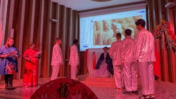 戏剧表演部分,学生们通过一系列精彩的表演展现了中国传统文化的丰富内涵。《中国生肖》表演通过生动有趣的演绎,让观众在欢笑中了解了中国生肖的故事与时间观念。《年的传说》带领观众走进中国春节的起源,精彩的演绎让大家感受到年兽故事的神秘。在话剧《雷雨》的表演中,学生们用深情并茂的演绎再现了戏剧冲突和人物命运,以其震撼人心的剧情和精湛的表演赢得了全场观众的热烈掌声。话剧《秦始皇》回顾了中国历史的辉煌篇章,展现了秦始皇统一六国、修建长城的伟大壮举。此外,学生们还精心演绎了《中国思想家》,他们以生动活泼的表演形式介绍了中国古代儒家孟子、道家老子和庄子以及法家韩非子的主要思想,让意大利的观众们对中国五千年悠久文明及其哲学思想有了更进一步的了解。