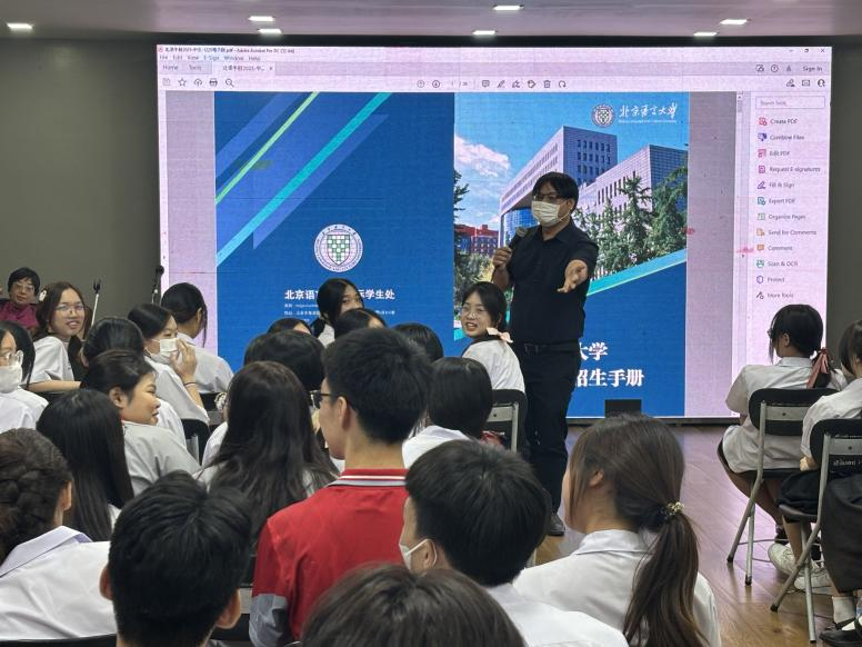 2025年2月5日,泰国玛希隆大学孔子学院一行人前往泰国诗纳卡宁威洛大学附属中学,为该校高一、高二学生开展了一场招生宣讲活动。此次宣讲活动旨在为北京语言大进行本科生招生宣传,吸引了近百名师生参与,现场气氛热烈,师生反响积极。