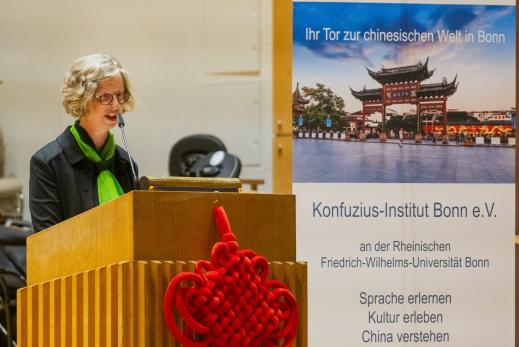波恩市市长温特塞女士(Nicole Unterseh)在致辞中强调了波恩市与中国的密切合作关系,她特别提到波恩与成都作为友好城市,多年来在文化、教育、环保等领域开展了广泛的合作。波恩孔子学院的成立和发展,为两市的交流注入了新的活力。