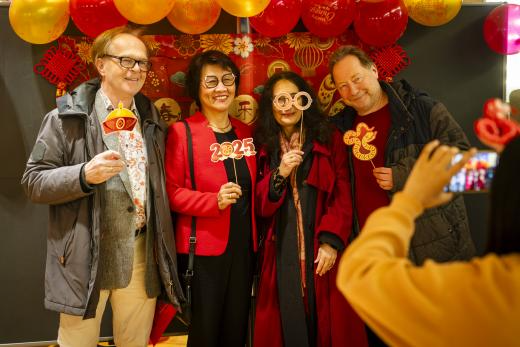音乐会开始前,波恩孔子学院精心布置了春节主题背景板,并设置了迎宾台为观众提供孔子学院杂志和精美礼品。观众们纷纷在背景板前合影留念,现场洋溢着浓厚的节日氛围。