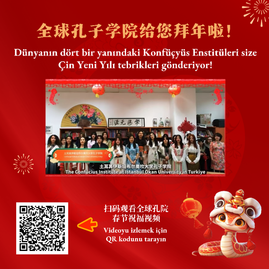 发布祝福视频:1月27日,孔院发布了奥坎孔院师生提前录制的春节祝福视频,为大家送上新春问候,传递节日的喜悦与温暖。奥坎孔院的祝福视频也入选了2025年全球孔子学院春节祝福合集,因此,来自土耳其的祝福也传向了世界各地。