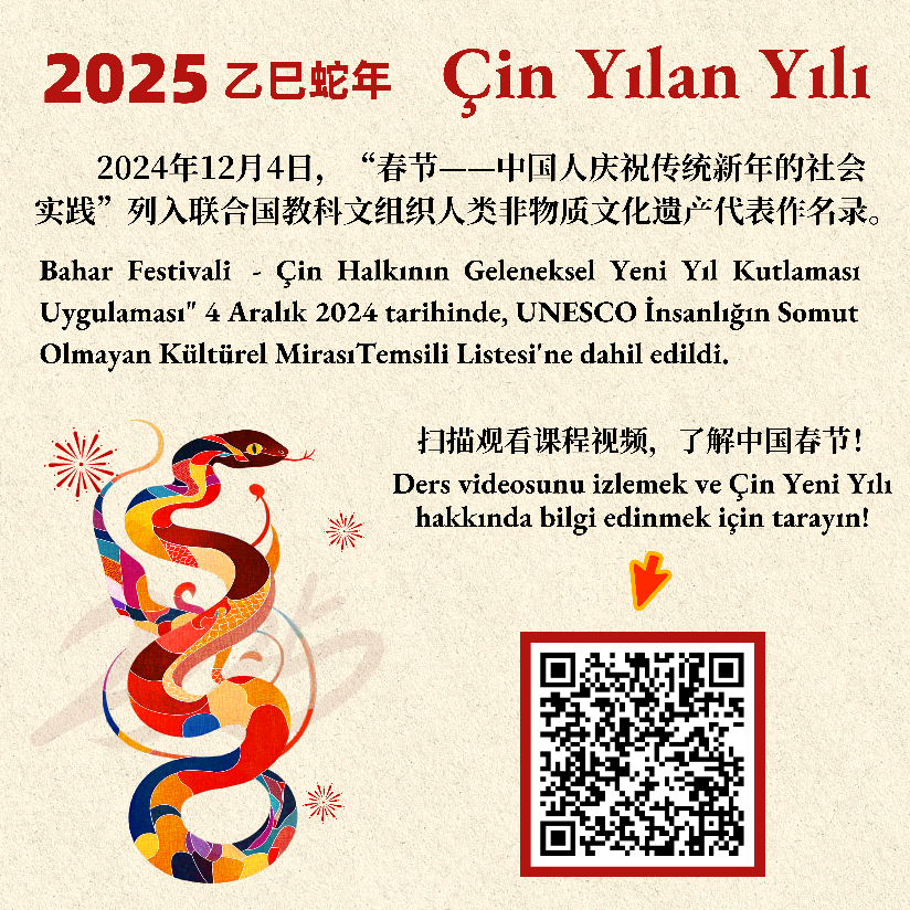 2024年12月4日,“春节——中国人庆祝传统新年的社会实践”列入联合国教科文组织人类非物质文化遗产代表作名录。作为首个“世界非遗版”中国春节,2025年的春节吸引了全球广泛关注。秉承弘扬中华优秀传统文化的宗旨,土耳其奥坎大学孔子学院积极组织参与庆祝中国春节的系列活动,通过线上线下多元化形式展示中国春节的独特魅力,促进中土文化交流,搭建友谊互鉴桥梁。