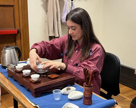 在活动的最后,匡佳菲老师根据大家的兴趣,详细向大家介绍了金骏眉和正山小种这两款红茶的特点和冲泡方法,并鼓励大家在家中也可以简单冲泡红茶,享受品茶的乐趣。她还建议同学们课后可以在网上查阅红茶的功效及适宜的饮用时间,进一步加深对红茶的理解。此次茶艺体验活动不仅让学生们亲身感受了中国茶文化的博大精深,还在品茗的过程中感受到了一种宁静与和谐的心境。许多学生在活动后表示,这次体验激发了他们对中国文化的浓厚兴趣,纷纷表示期待更多类似活动的举办。