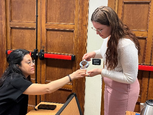随后,匡佳菲老师向大家演示了行茶十式,在舒缓悠扬的《问茶》乐曲中泡制了红茶“金骏眉”。演示过程中,匡佳菲老师从“主客行礼”到“请茶”,每一步都进行了细致的讲解,并强调了摇香、温器和泡茶时需要注意的细节。学生们在沉浸式体验中,不仅感受到了茶艺的仪式感,也对泡茶的基本流程有了更清晰的了解。