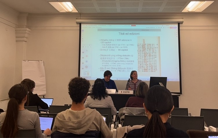 北语新闻网4月1日电(通讯员 刘一霖 摄影 黎佳欣)当地时间3月27日下午,主题讲座“石上小叙:中国小说《红楼梦》导读”(Piccoli discorsi su pietra: introduzione al romanzo cinese Il sogno della camera rossa)在圣心大学尼罗内校区(Nirone)NI.111教室及线上平台Microsoft Teams顺利举行。本次讲座由意大利圣心孔子学院与圣心大学外国语言文学学院联合举办,特邀维罗纳大学教授芭芭拉·比塞托(Barbara Bisetto)作主旨发言,圣心大学外语系中文项目负责人兼孔院教学顾问夏慕华(Chiara Piccinici)教授主持,圣心孔院竺易安院长(Elisa Maria Giunipero)、梁清院长、部分孔院教师以及米兰和布雷西亚(Brescia)校区相关专业师生通过线上线下的方式参加了此次活动。