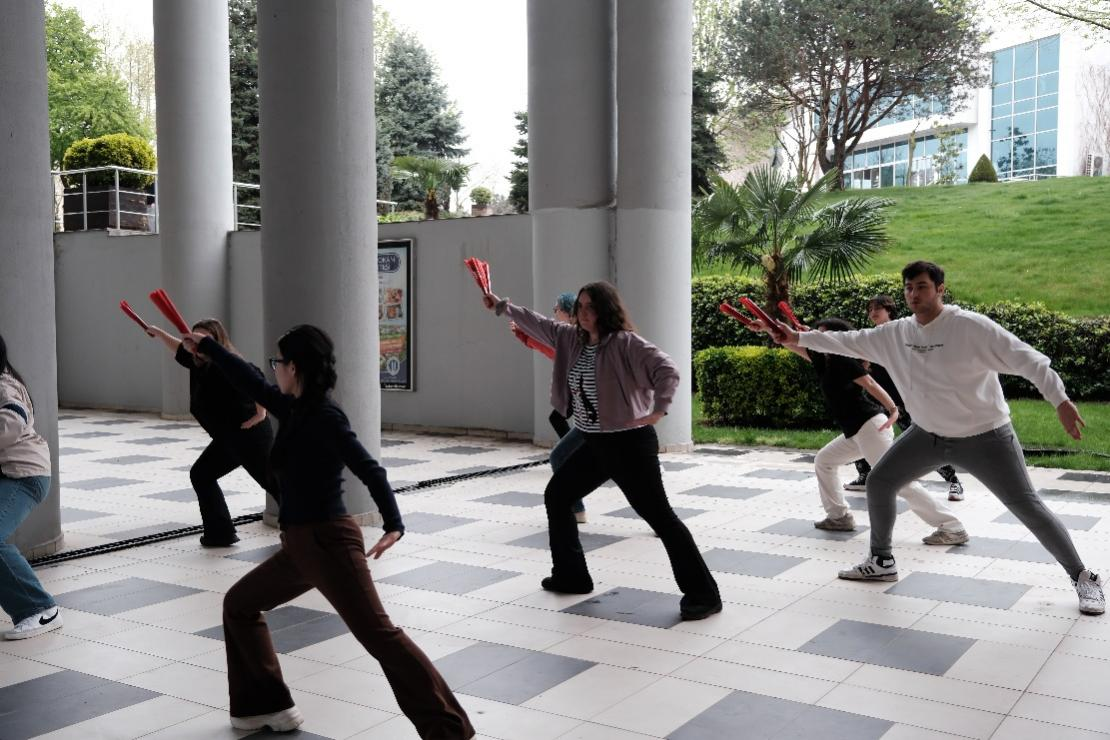 北语新闻网4月14日电(通讯员 仝亦晴 摄影 黎原菁)4月7日,春意盎然,万物复苏,备受期待的选修课“太极功夫扇课程”也正式开班了。本课程由土耳其奥坎大学孔子学院教师授课,旨在通过介绍并学习太极拳与中国传统功夫扇融合的中华艺术,引导学生强身健体的同时感知中华文化的内涵。来自不同专业、不同年级的土耳其学生齐聚一堂,兴致勃勃地跟随老师踏上了探索太极文化的奇妙之旅。