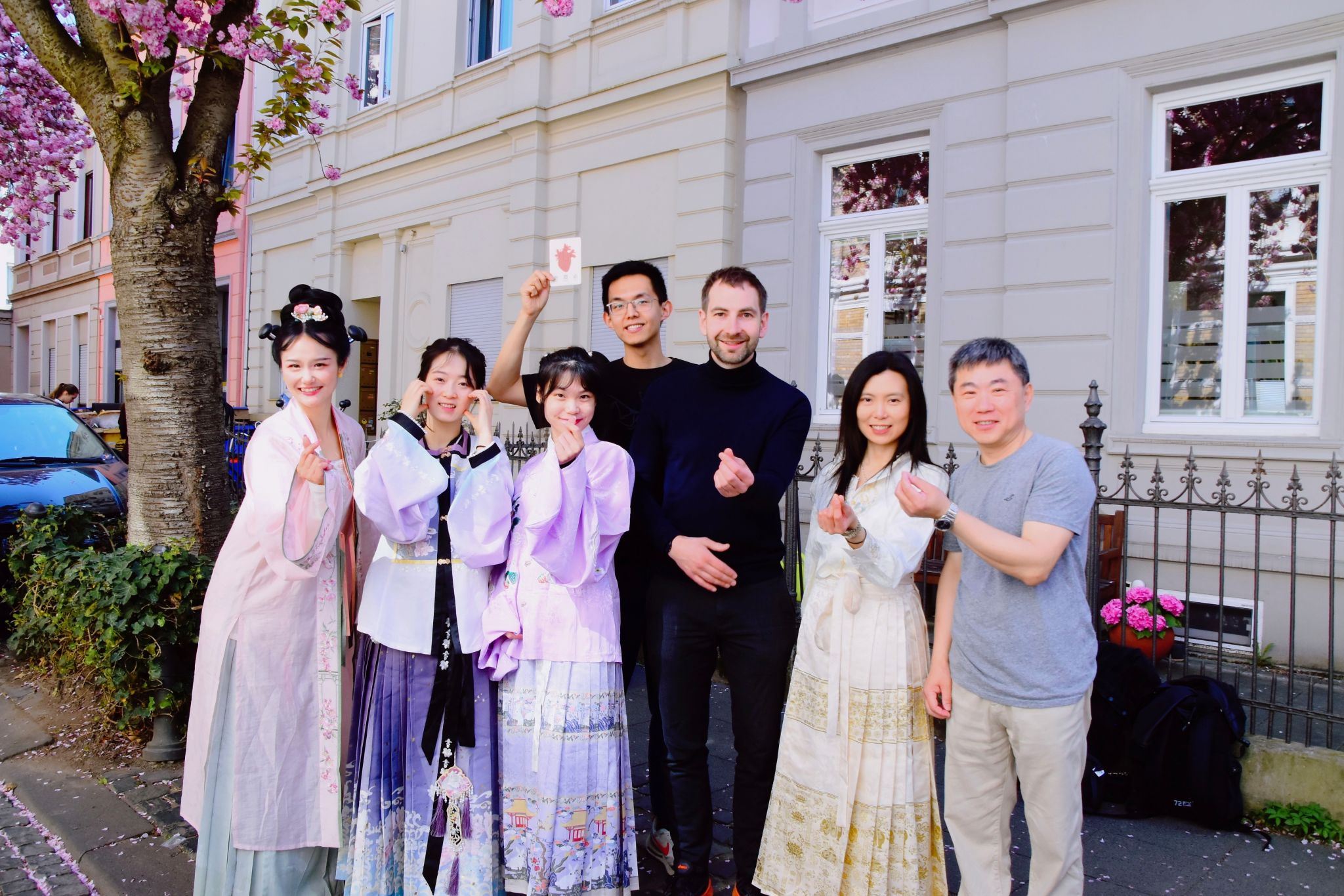 本次中文日主要围绕“春日赏樱”这一当地特色展开。梅、兰、竹、菊、牡丹固然在中国花卉中享有崇高地位,但唐诗之中也有不少有关樱花的诗句,例如元稹《折枝花赠行》一诗:“樱花树下送君时,一寸春心逐折枝。别后相思最多处,千株万片绕林垂。”因此,波恩孔院特地策划了贴合春日美景的中国语言文化活动。