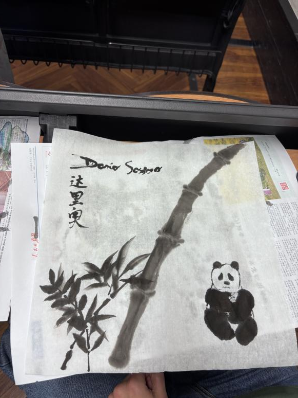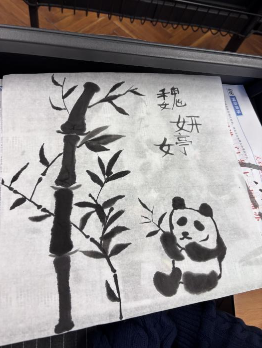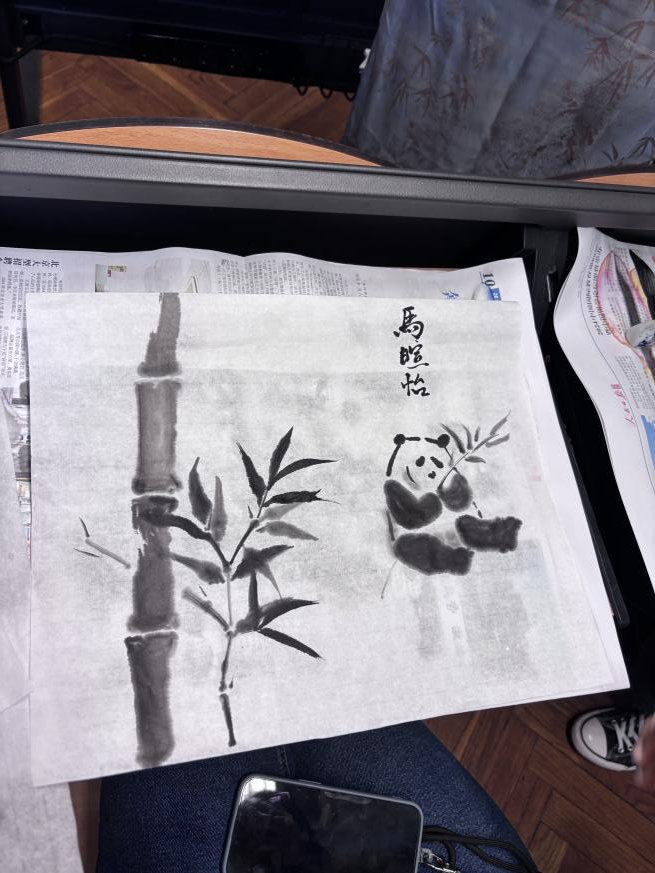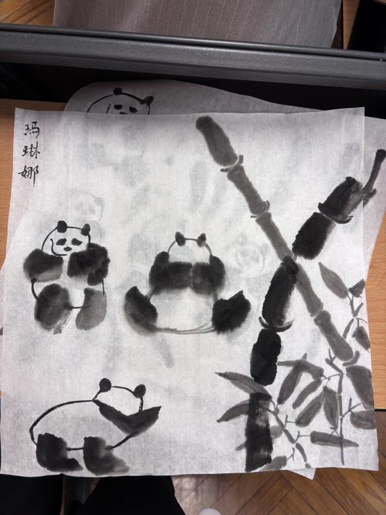 经过一个半小时的认真练习和创作,每一位学生都完成了一幅独具个人风格的“熊猫与竹子”画作。黎佳欣老师建议大家都写上自己的中文名字,让作品更完整,也更有纪念意义。