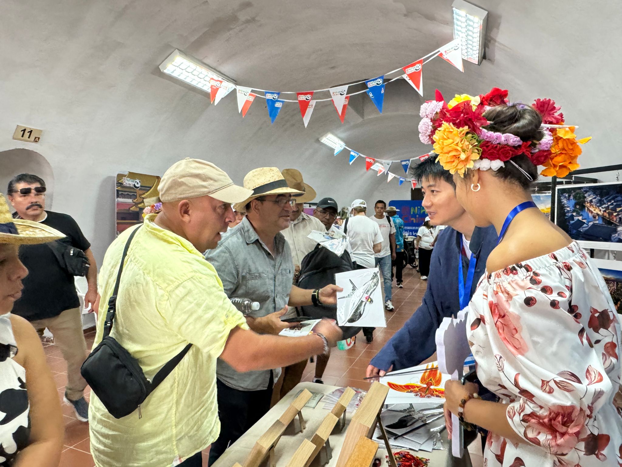 作为古巴唯一的汉语教学与文化传播机构,哈瓦那大学孔子学院在此次中国主宾国展区的成功亮相中承担了多项重要任务,为活动的顺利开展提供了全方位的支持。从展区布置到文化活动策划,从翻译工作到艺术合作协调,孔子学院师生以高度的专业精神和文化使命感,充分展示了中华文化的独特魅力。在200平方米的“你好!中国”主宾国展区内,孔子学院协助策划并组织了中国世界遗产图片展、非物质文化遗产体验以及旅游推介会等系列活动,吸引了来自全球的850余名国际旅游业代表及2000余名古巴从业者。在非物质文化遗产展示环节,孔子学院团队协助开展了糖画、川剧变脸、簪花、非遗风筝、漆扇制作等具有浓厚中国传统特色的互动体验项目,为古巴民众和国际嘉宾营造了沉浸式的文化氛围,彰显中国传统文化的深厚底蕴。