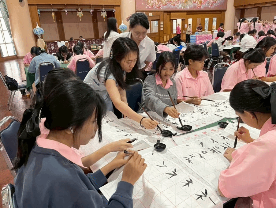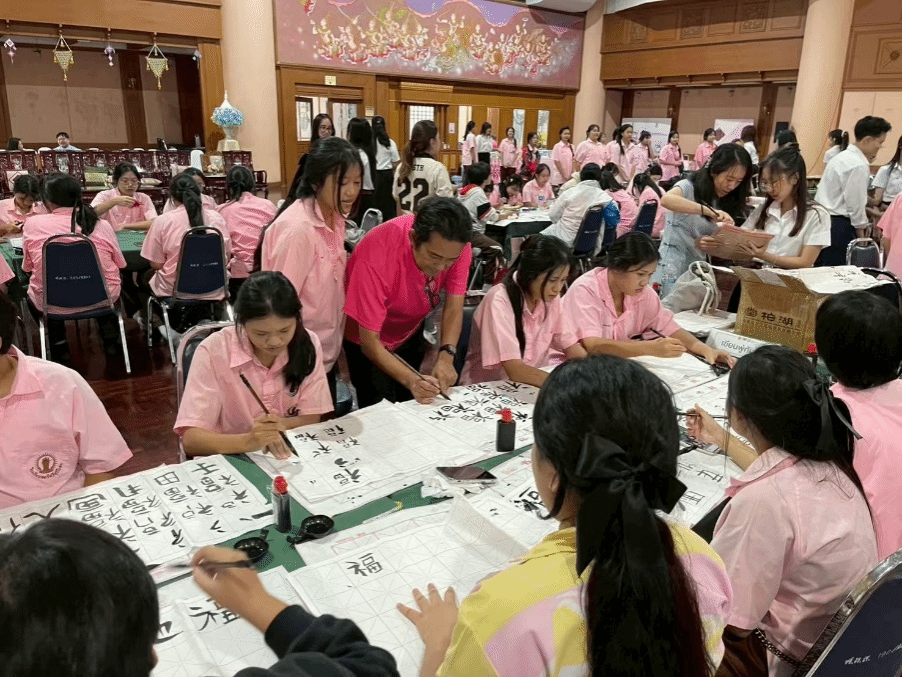 北语新闻网9月2日电(通讯员 李思安琪 摄影 May)8月30日,泰国玛希隆大学孔子学院团队在中方院长林艳、外方院长张曹武和外方副院长王澜鹏的带领下,携手20余名中文系学生及2名国际中文教育志愿者,赴泰国斯里苏里约泰女子学校成功举办了一场以“中文与文化交流”为主题的沉浸式文化体验活动。本次活动共吸引118名学生积极参与,现场气氛热烈,交流亲切融洽。