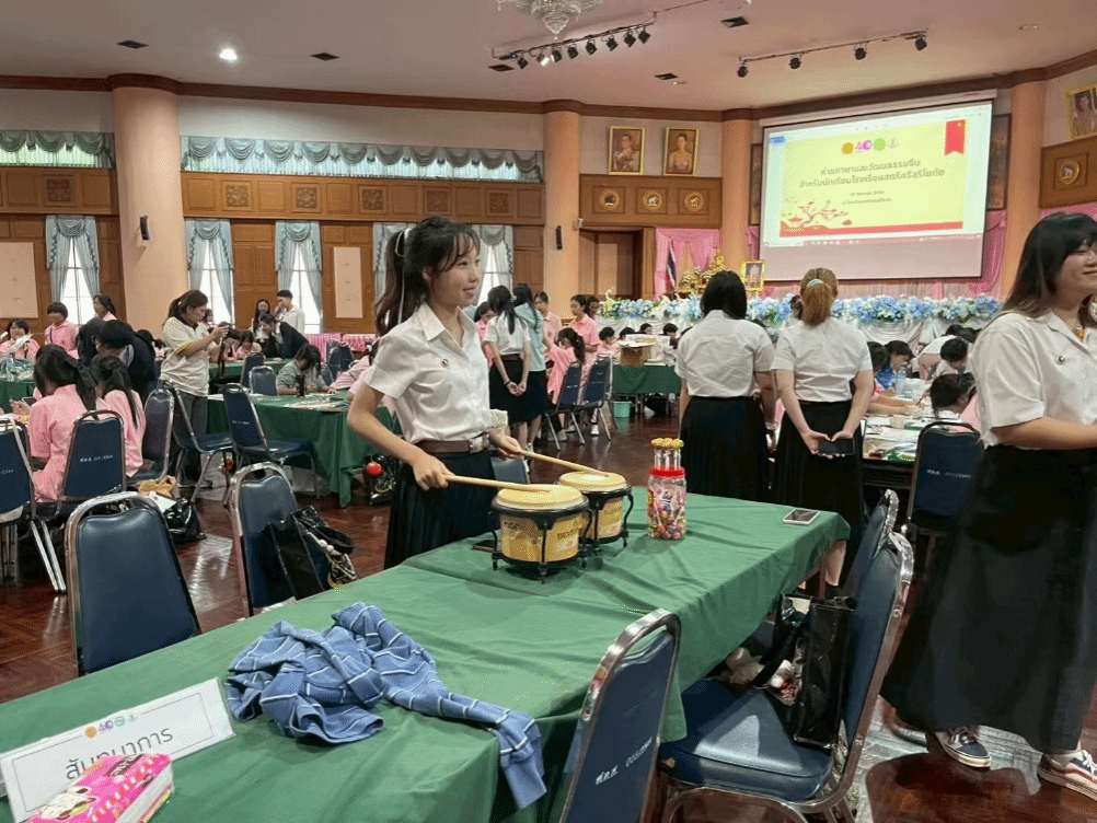 早晨8时30分,活动在斯里苏里约泰女子学校的宣传片中正式启动。学校代表副主任在开场致辞中,热烈欢迎玛希隆大学孔子学院团队的到来,并对孔院多年来在推动中文教学、深化中泰人文交流方面所取得的显著成效致以诚挚谢意。