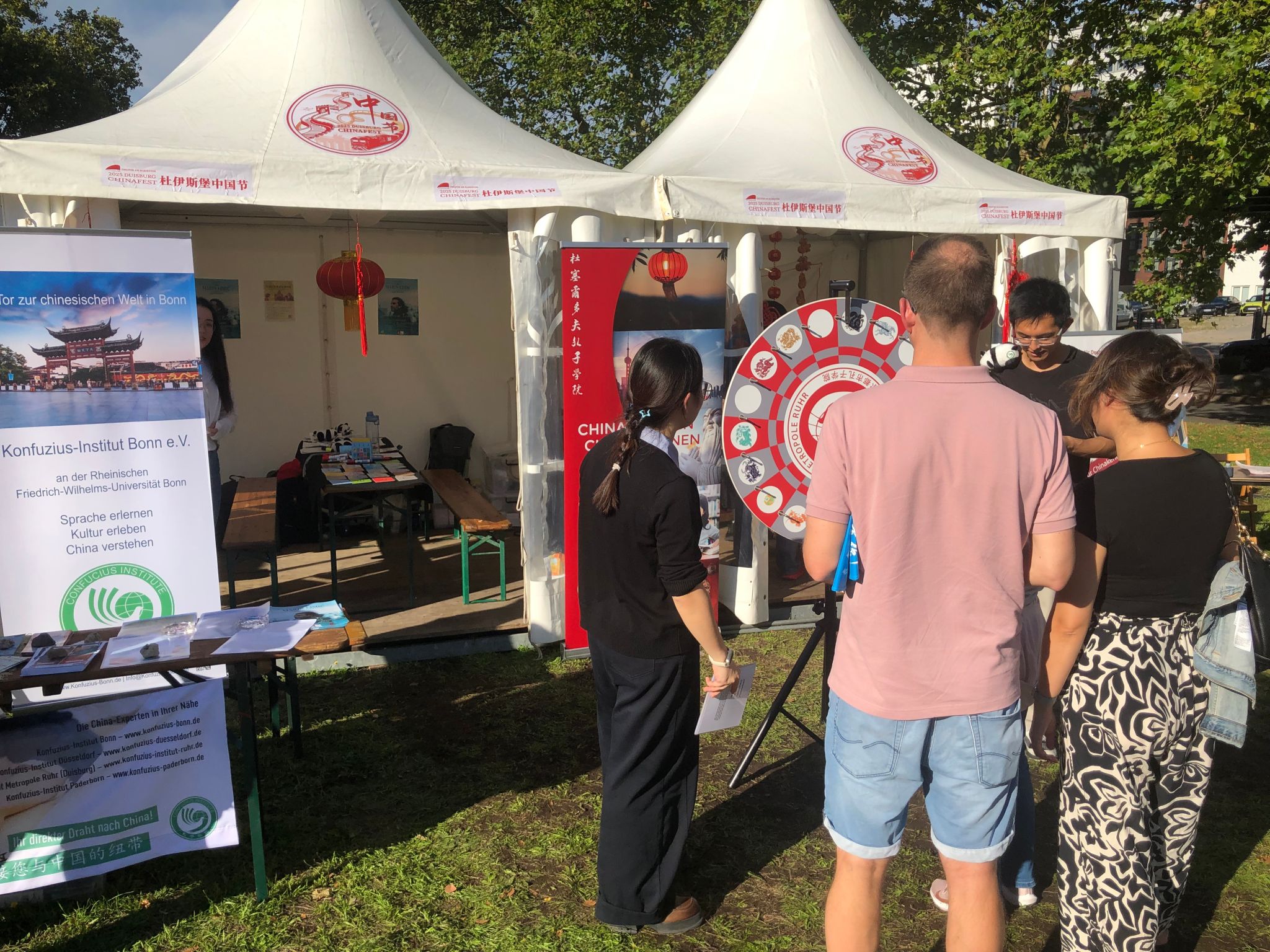 北语新闻网9月26日电(通讯员 程子轩 摄影 赵刚 张奥京)当地时间9月19日,杜伊斯堡中国节在玛丽安门剧院前的广场顺利开幕。在为期三日的活动首日,波恩孔院展点和表演活动吸引了大批市民驻足,取得了良好反响。