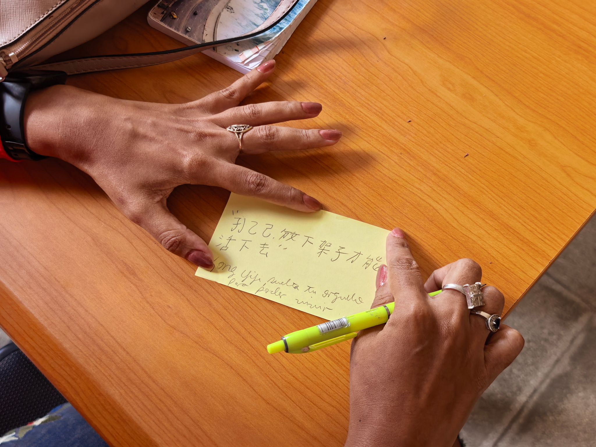 活动尾声,高级班学生学礼用中文演唱《孔乙己》主题歌曲,婉转的旋律和深情的歌词让全场沉浸在对经典人物的共情中。随后的“写给孔乙己的一句话”环节中,师生们在便利贴上写下自己的感悟。这些文字不仅是对孔乙己的回应,更是对当下社会的反思与期许。活动在一首轻快的中文歌曲《加油》中圆满落幕,师生们随着旋律轻轻拍手,教室内洋溢着希望与力量。全场师生在贴满便利贴的“孔乙己文化墙”前合影留念,为这场文学与文化的深度对话画上了生动的句号。
