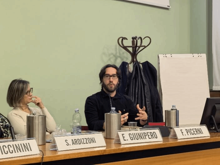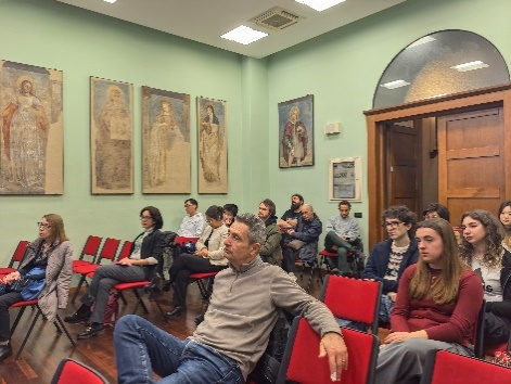 北语新闻网11月17日电(通讯员 匡佳菲 摄影 匡佳菲)近日,圣心孔院在圣心大学哲梅里(Gemelli)校区成功举办了“米兰书城”系列活动之一的“20世纪中国诗人艾青”诗歌分享会。本次活动由孔院院长竺易安(Elisa Giunipero)主持。锡耶纳外国人大学教授萨布丽娜·阿尔迪佐尼(Sabrina Ardizzoni)、博洛尼亚大学教授费德里科·皮切尔尼(Federico Picerni)以及圣心大学教授夏慕华(Chiara Piccinini)受邀出席。讲座现场座无虚席,学者、师生与诗歌爱好者共同聆听了一场跨越语言与时代的文学对话。