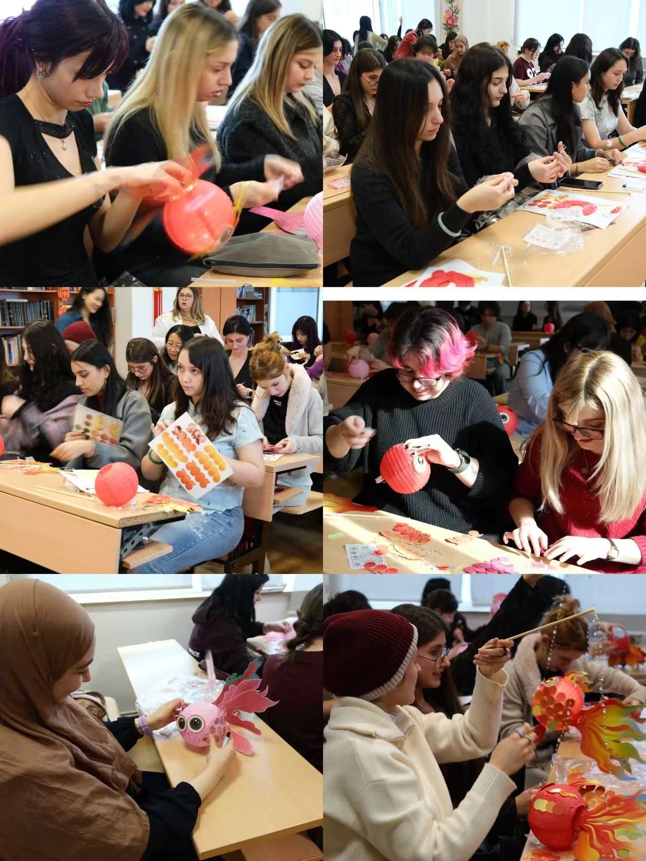北语新闻网3月4日电(通讯员 贺洁 摄影 李依婷)2月17日,正值丙午马年正月初一,奥坎大学孔子学院活动教室洋溢着浓浓的节日气氛。作为“庆祝中土建交五十五周年特别企划”的首场活动,“指尖上的中国非遗系列体验活动:做鱼灯”在这里温馨启幕。来自奥坎大学的近40名土耳其学生与中国留学生、孔子学院师生齐聚一堂,在灯笼的光影与笑语中,共同感受中国传统非遗文化的独特魅力。