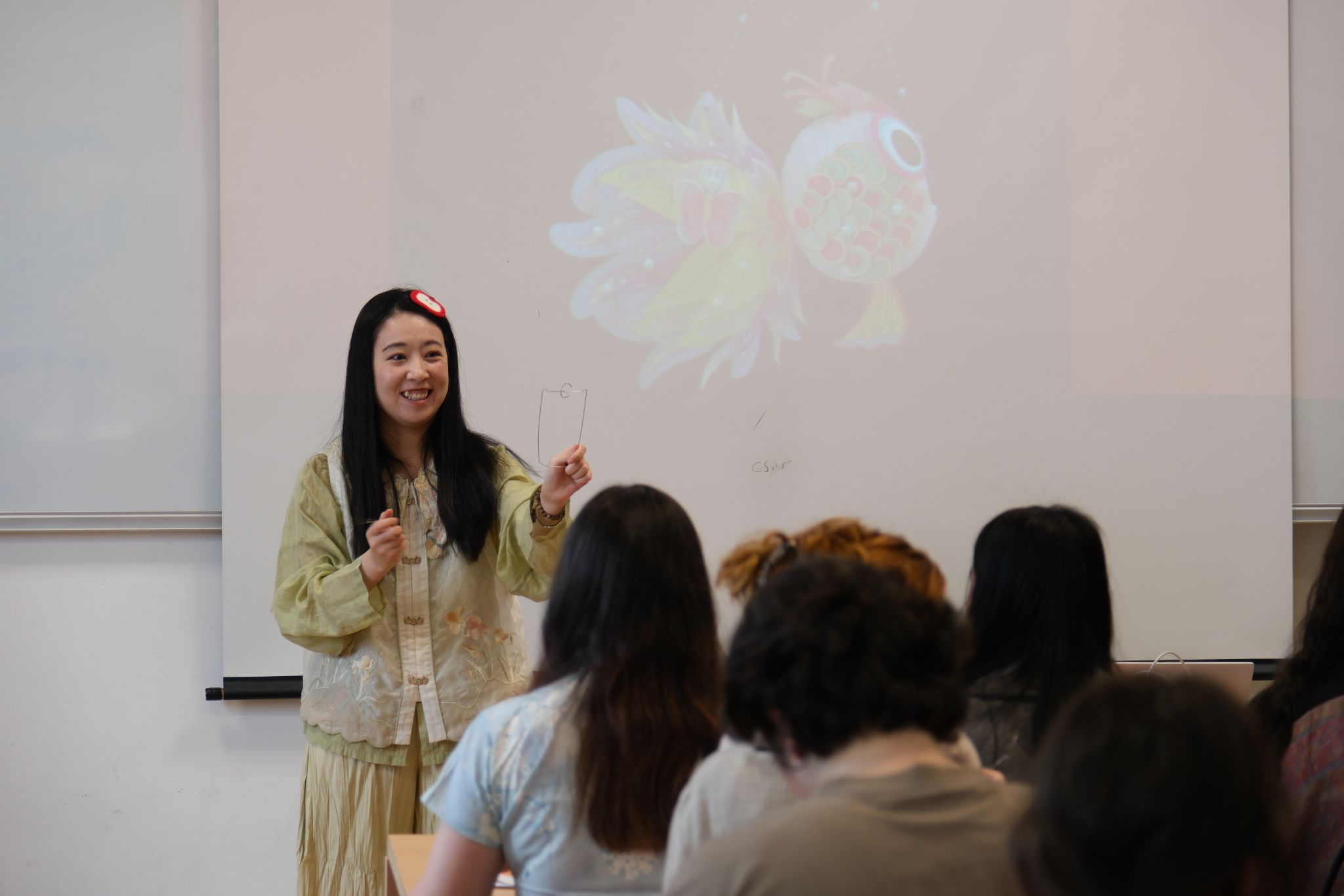 本次活动旨在通过非遗体验,增进中土学生之间的文化交流与情感联结。这次鱼灯活动由孔子学院陈潇老师策划组织,而走上讲台、带领大家走进鱼灯世界的,则是中土学生们自己。